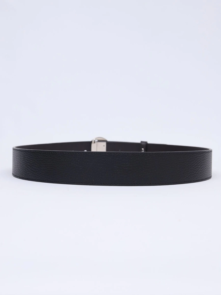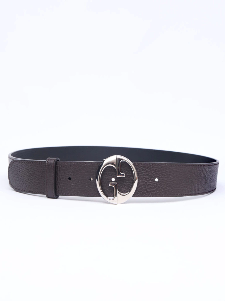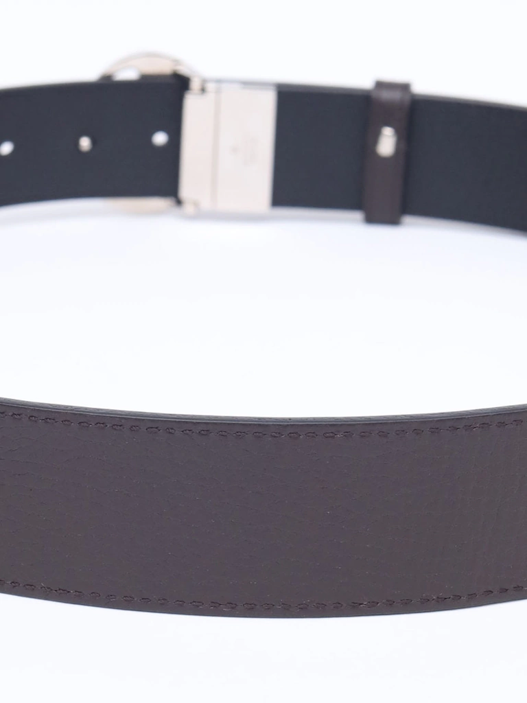 Autêntico Cinto Gucci Reversible Double G tamanho 95 apresenta uma fivela prata com brilho com as letras GG invertidas, dupla face nas cores preto e marrom ébano.