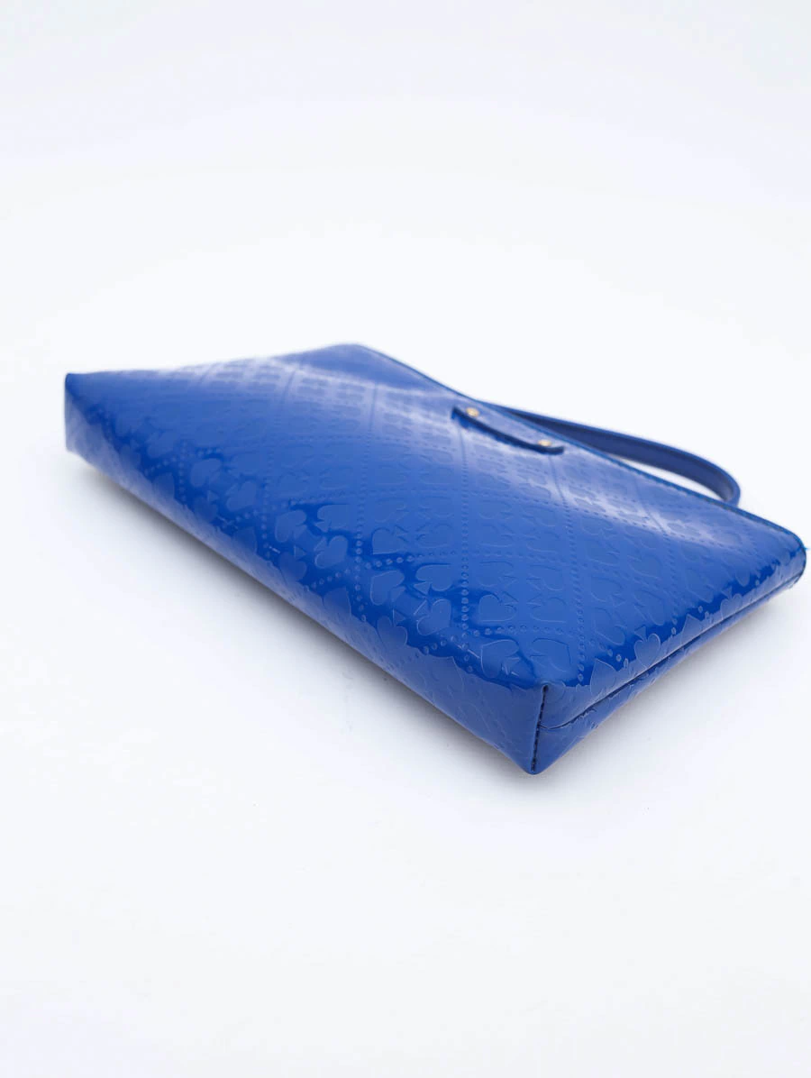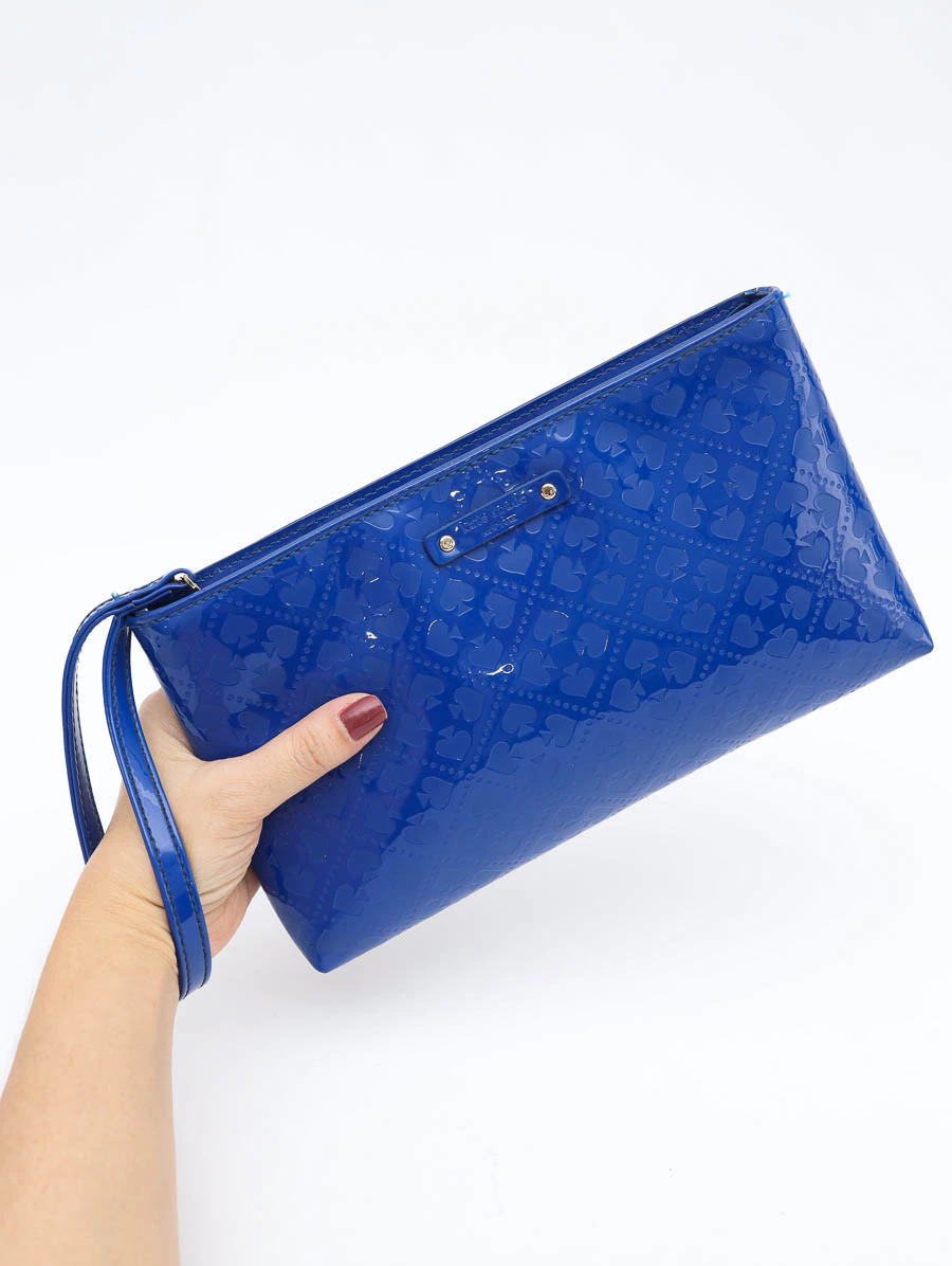 A Clutch Kate Spade Lolly é perfeita para quem busca praticidade sem abrir mão de estilo. Feita em verniz azul vibrante, seu destaque está na textura em relevo com os ícones clássicos da marca — um toque divertido e elegante ao mesmo tempo.