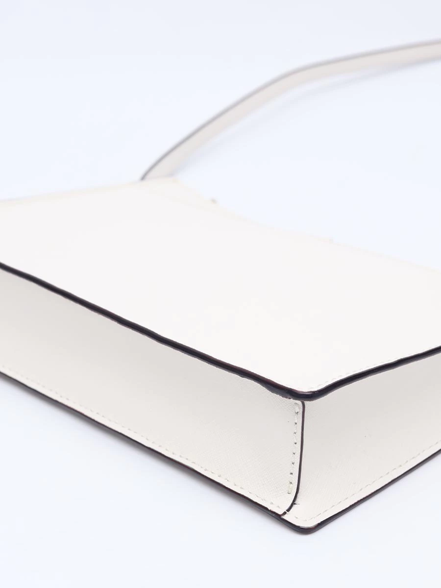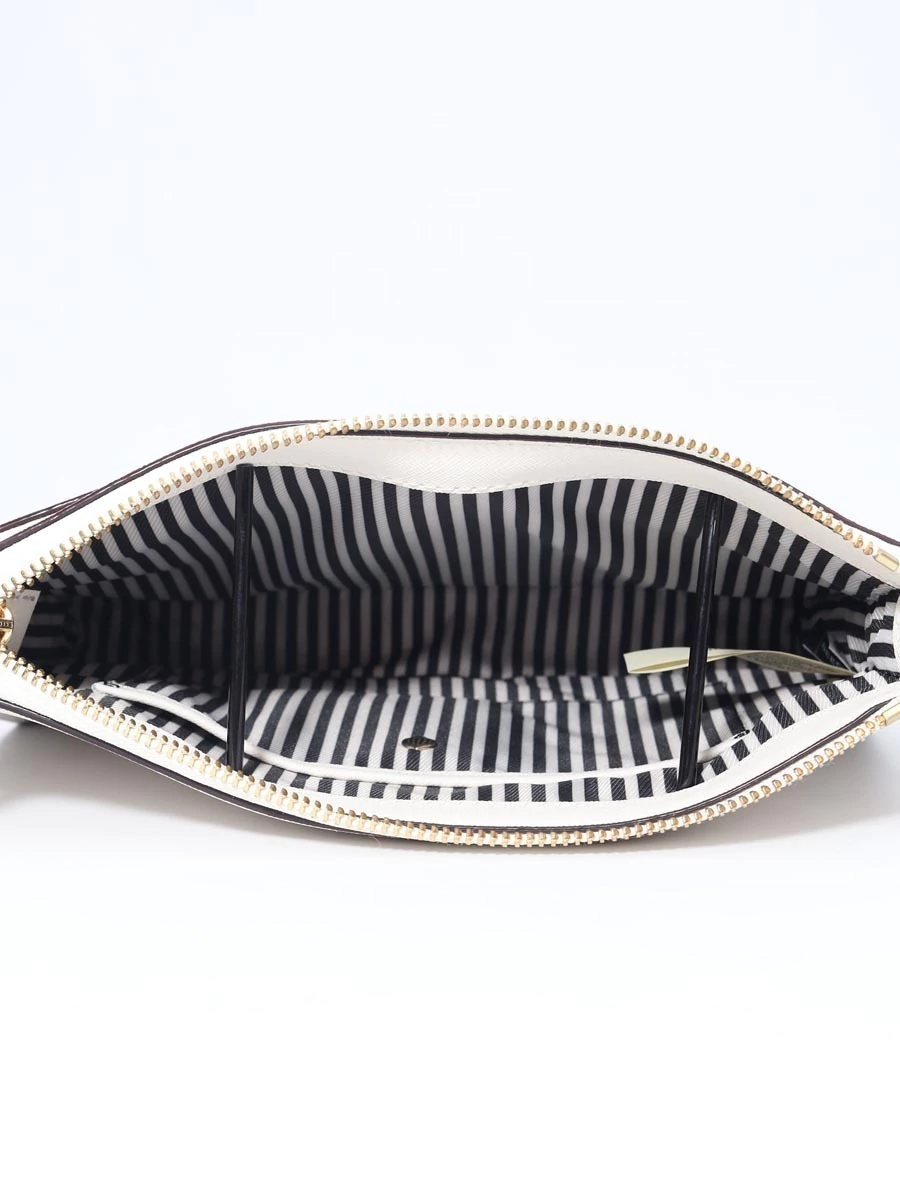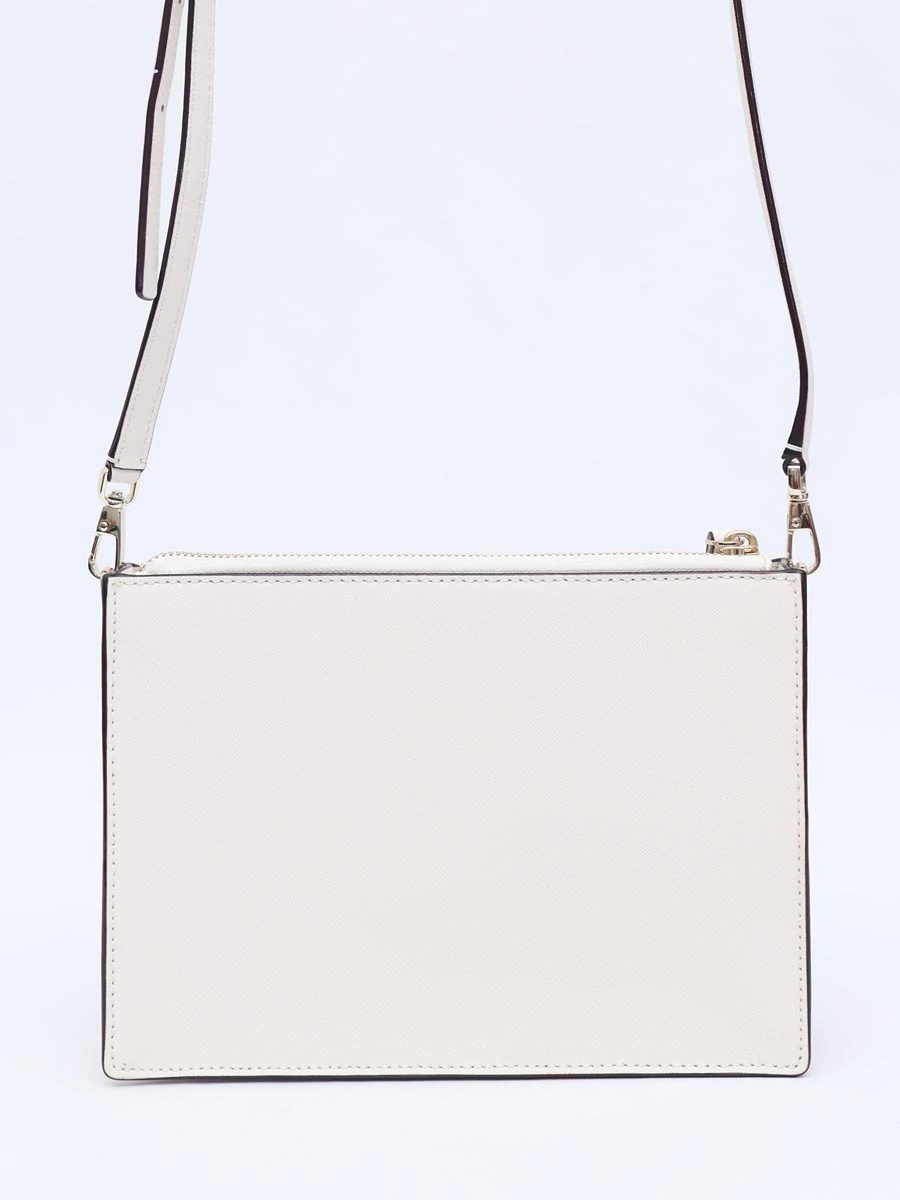 Autêntica Bolsa Kate Spade Cameron Street Clarise Crossbodyproduzida em couro saffiano branco e bordas pretas. Apresenta alça longa removível, um bolso frontal com abertura magnética, abertura superior com zíper e interior decorado com listras com um bolso interno.