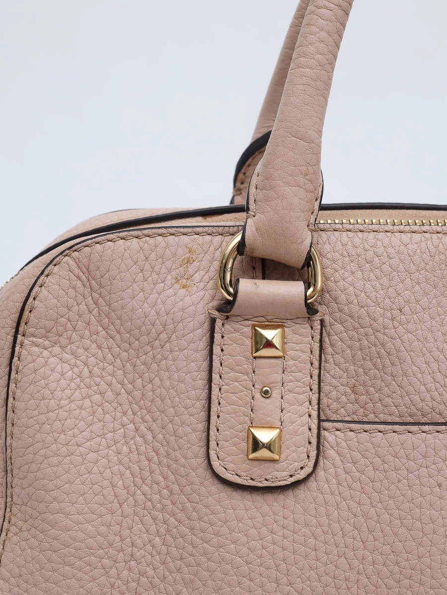 A Bolsa Michael Kors Sandrine Stud Satchel é o equilíbrio perfeito entre elegância e praticidade. Confeccionada em couro granulado rosa claro, seu design estruturado e sofisticado é enriquecido por delicados detalhes em tachas douradas, que adicionam um toque moderno e refinado.