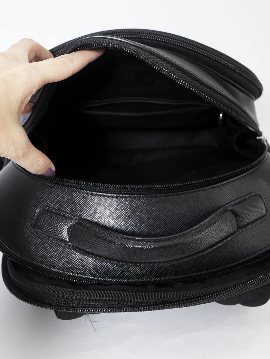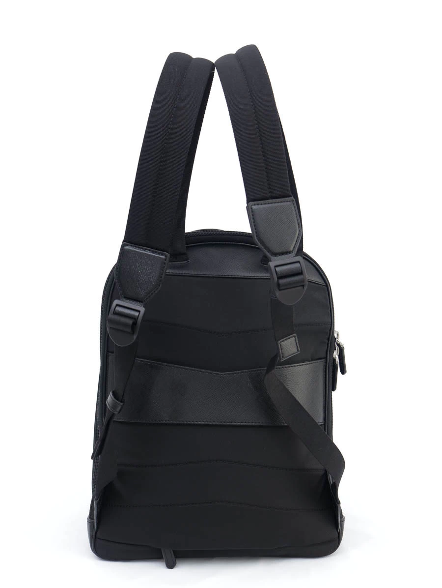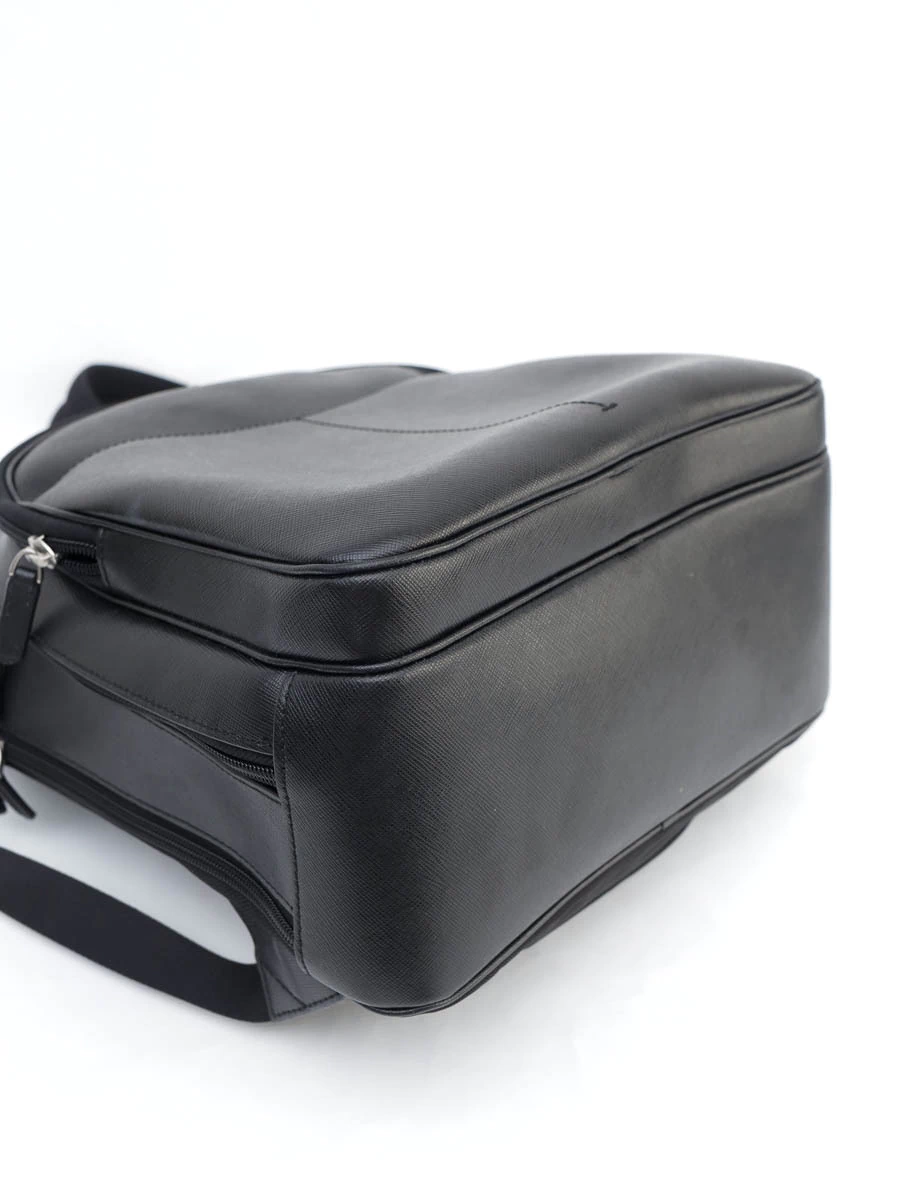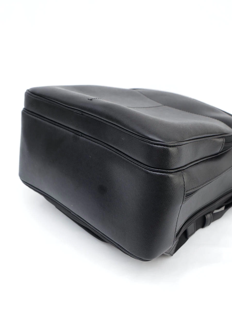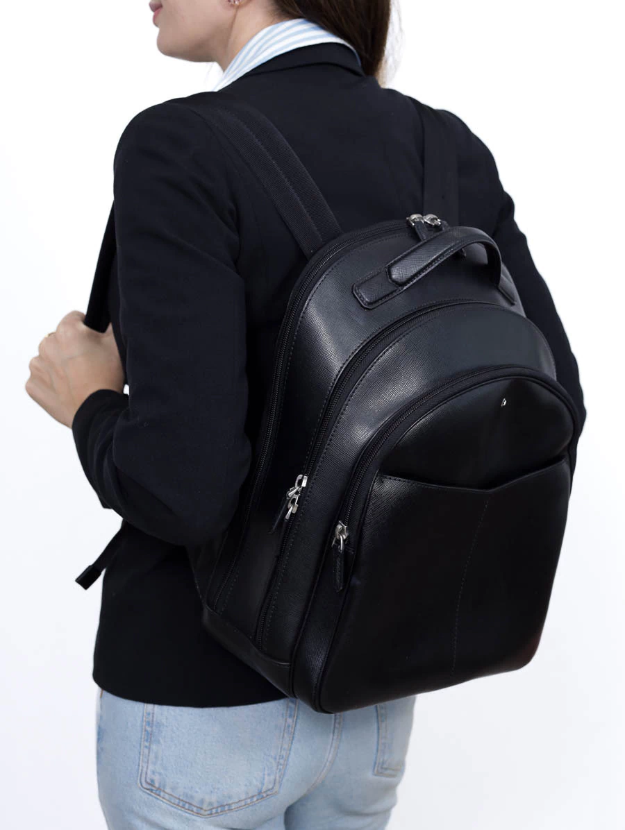Mochila Original MontBlanc Média Sartorial produzida em couro na cor preta com metais pratas. Apresenta dois bolsos frontais, uma pequena alça de mão, duas alças de ombro com ajuste de comprimento, compartimento para notebook, compartimento principal com três bolsos internos e um compartimento frontal menor.