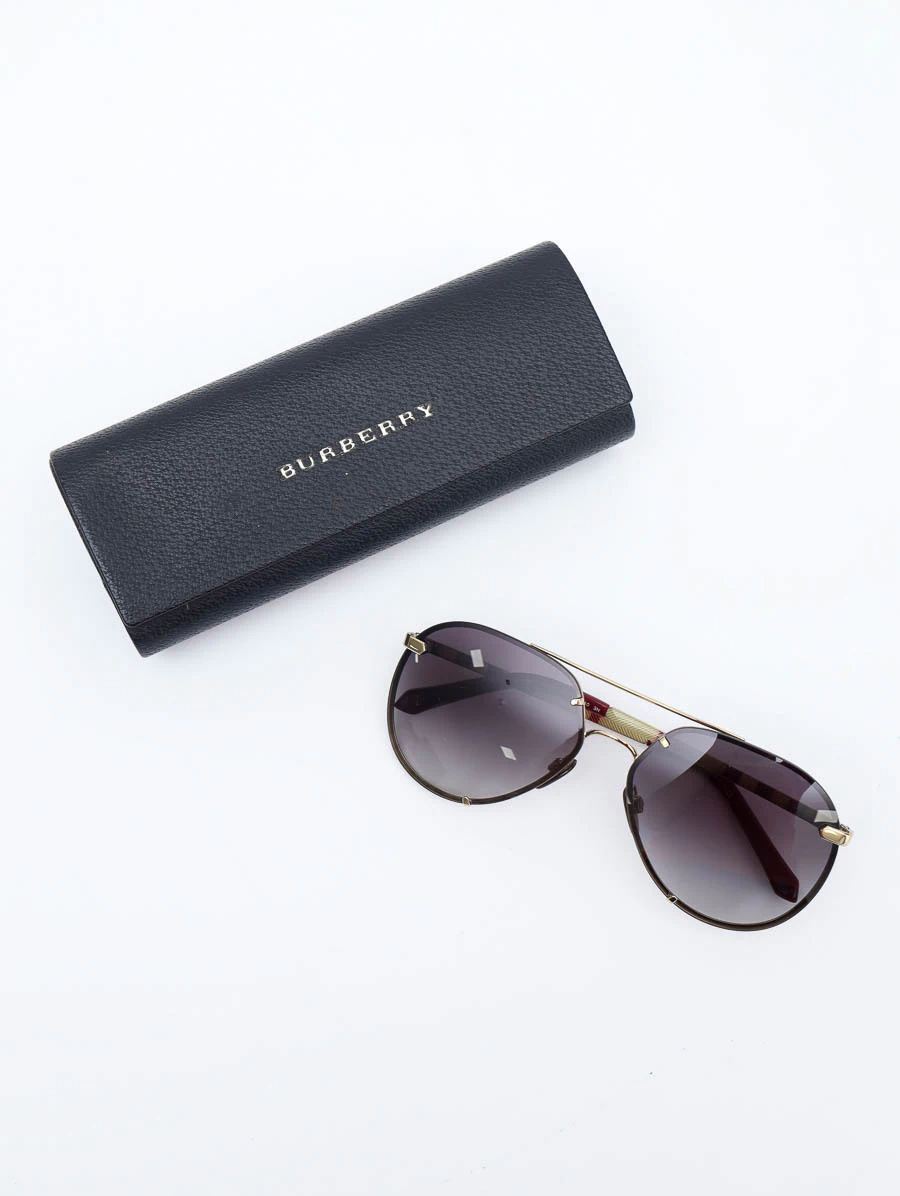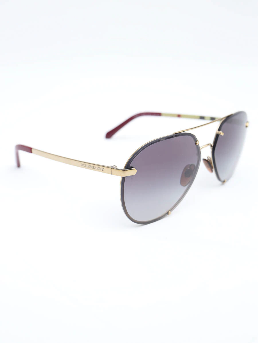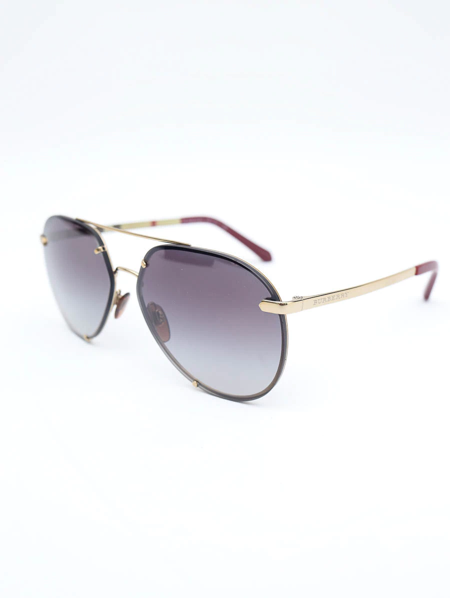 Óculos de Sol Burberry B 3099 com armação em metais dourados. Apresenta lentes em degradê na cor preta, detalhes nas hastes com estampa da marca e inscrição Burberry.