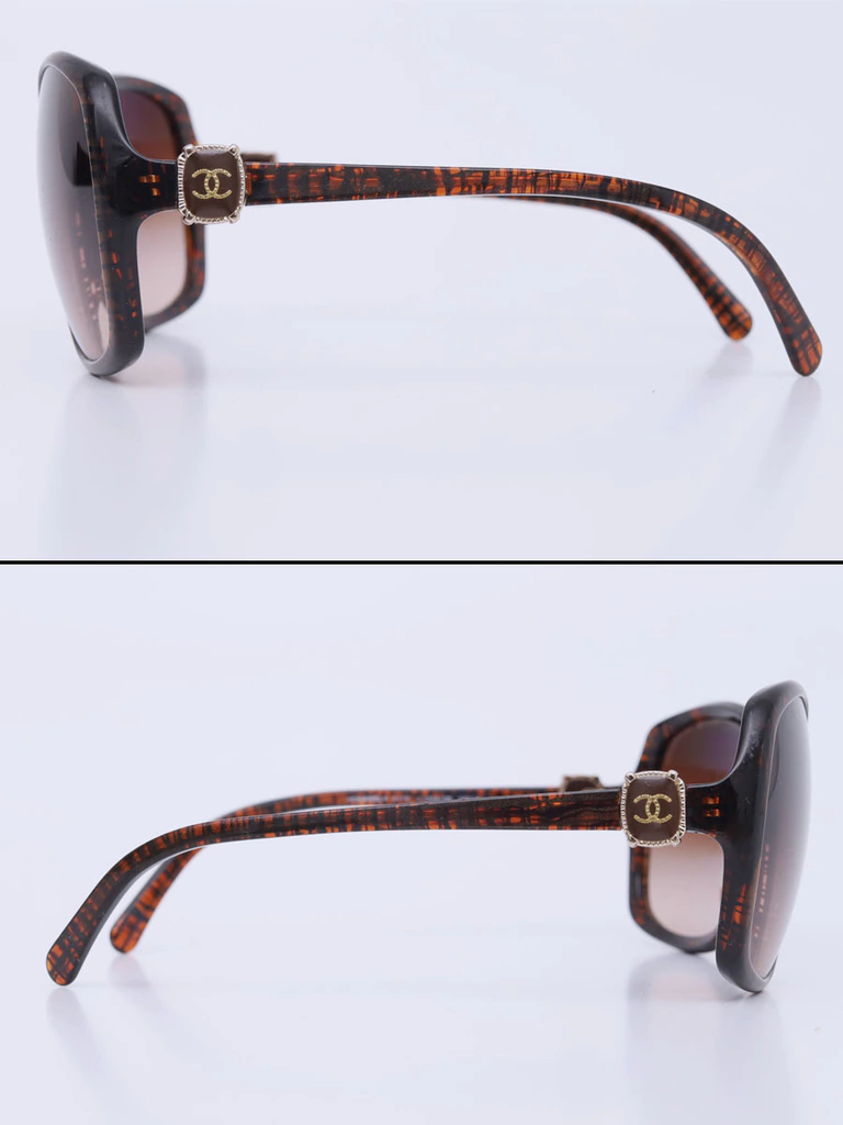 Óculos de Sol Chanel 5174 confeccionado em acetato tortuga cores marrom e preto com lentes marrom degradê e hastes finas. Um detalhe de um pequeno logo nas laterais com o monograma da marca Chanel "CC" invertidos. Seminovo, em excelente estado de conservação, apresenta pequeninos risquinhos na lente.