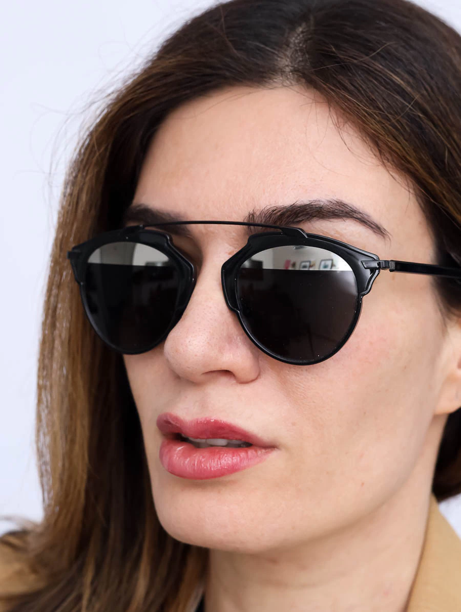 Óculos de Sol Dior So Real com lente degrade nas cores prata e preto e hastes pretas.