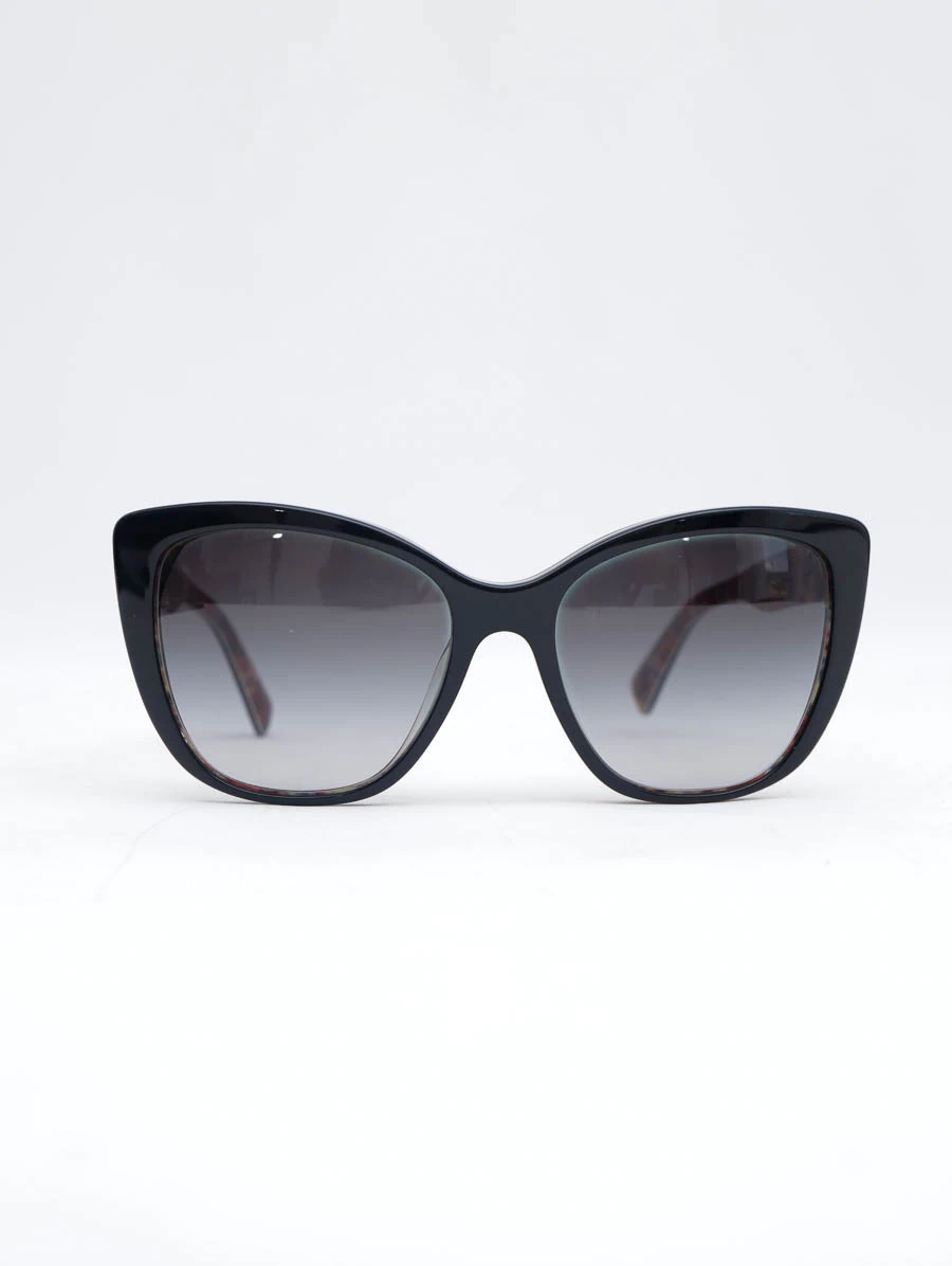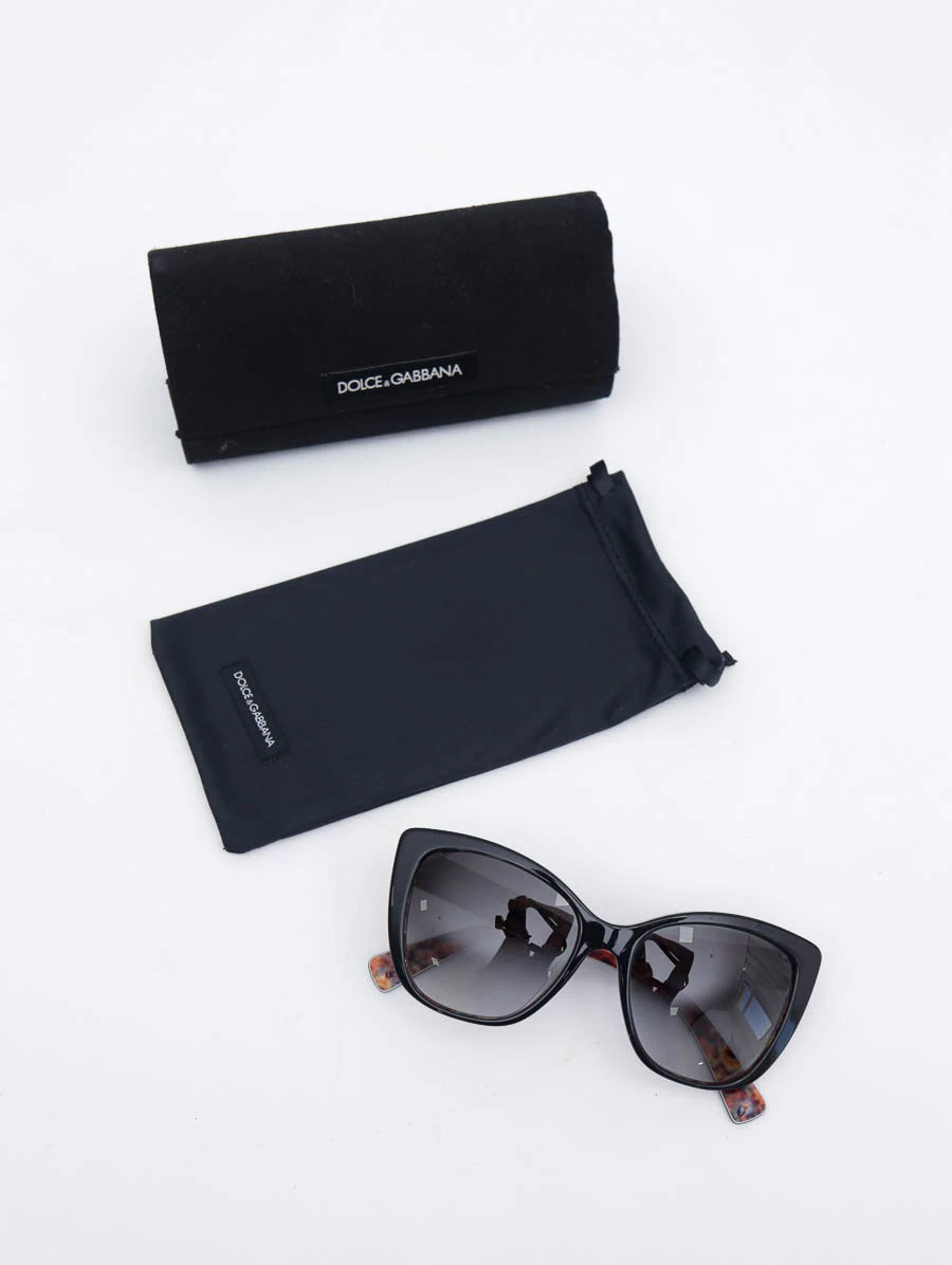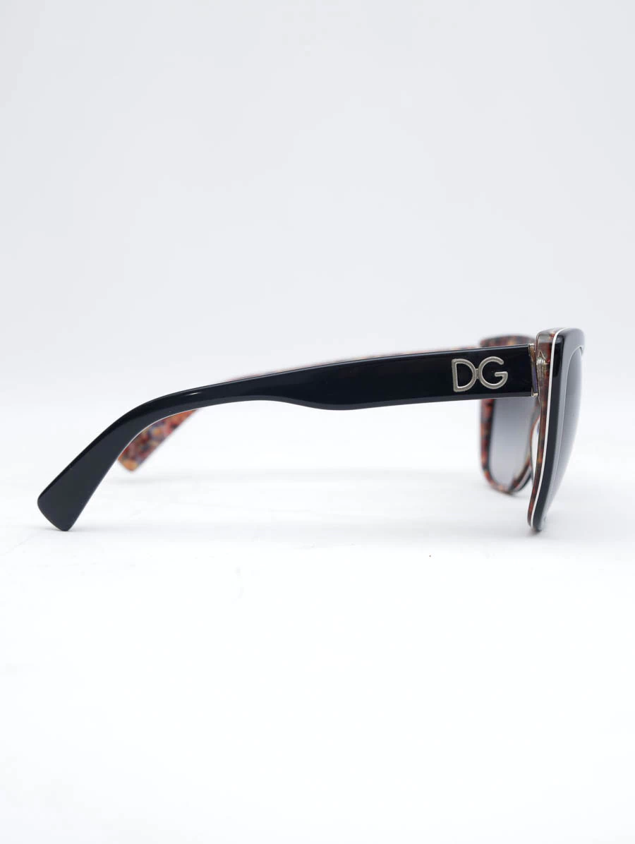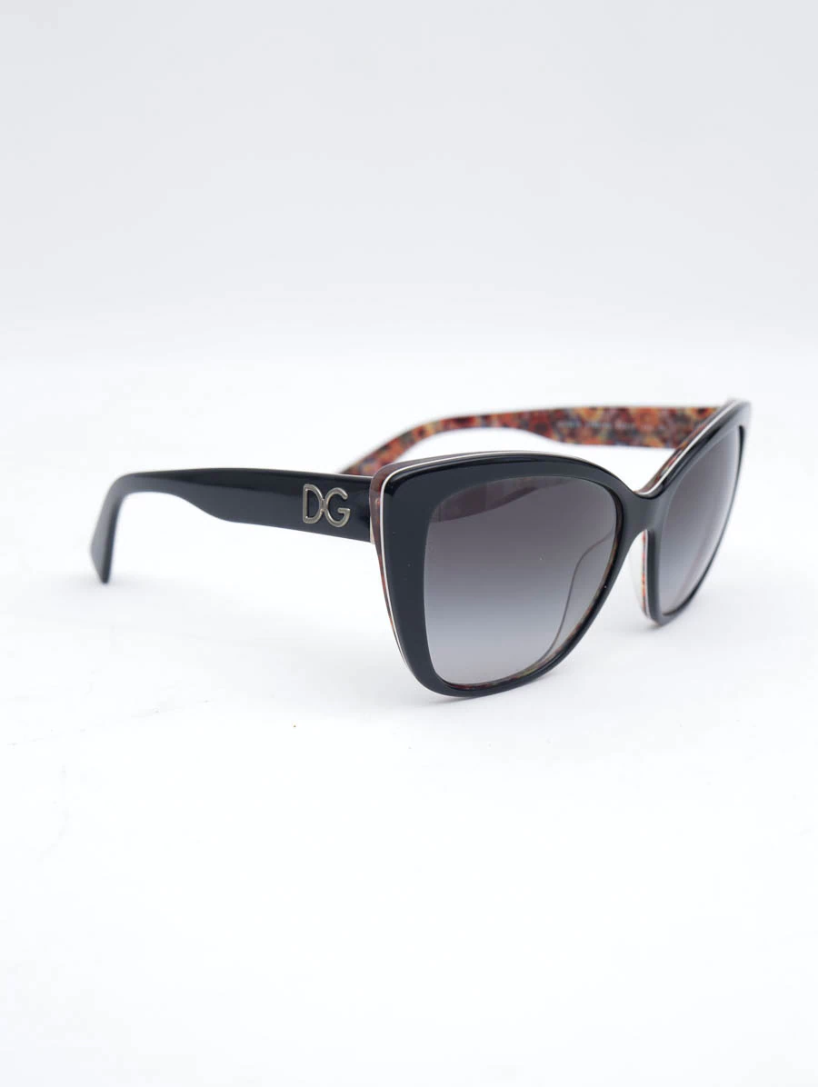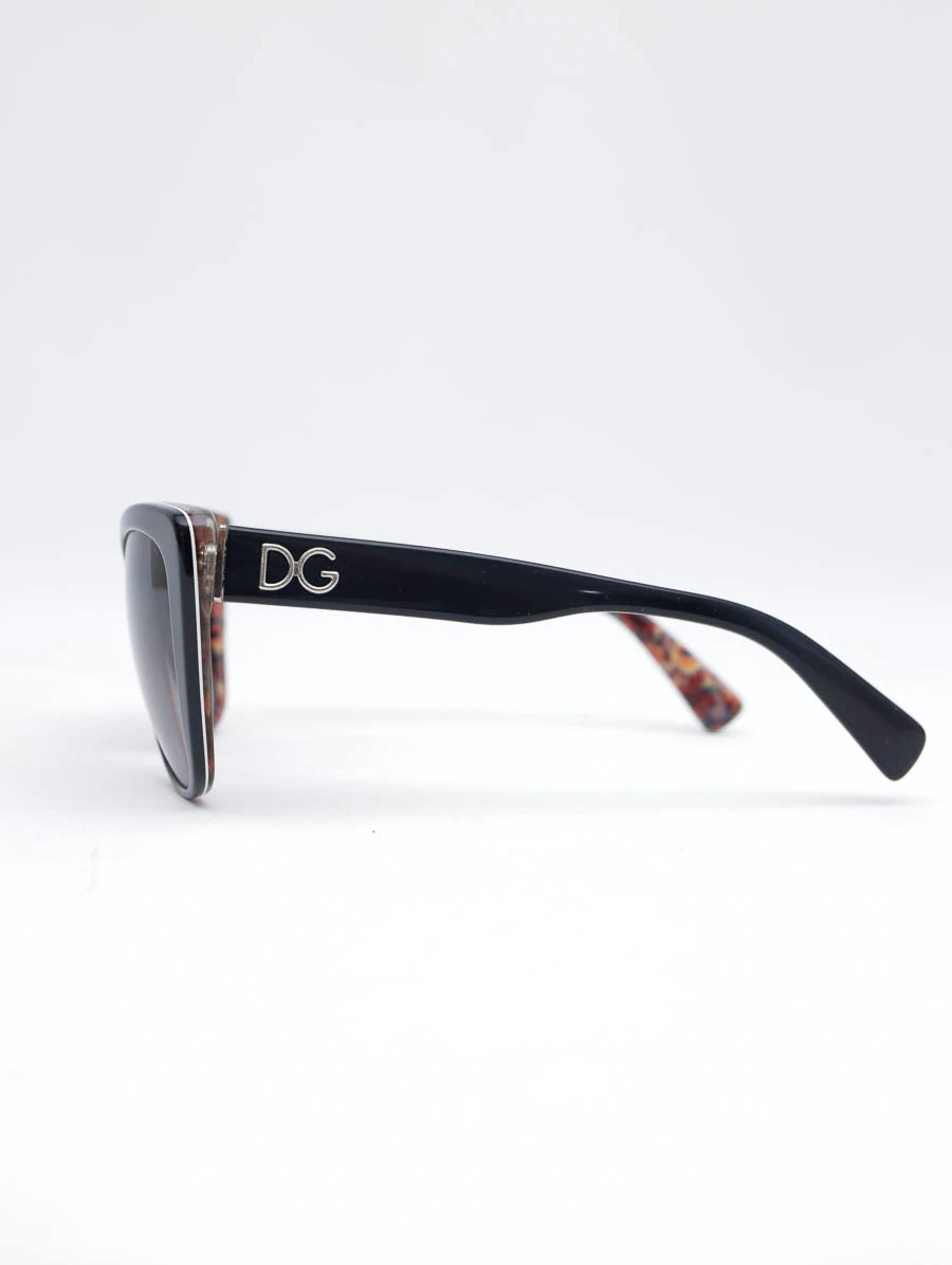 Óculos de Sol Dolce & Gabbana 4216com armação em acetato na cor preta e parte interna estampada colorida. Apresenta lentes em degradê preta e logo DG nas laterais.