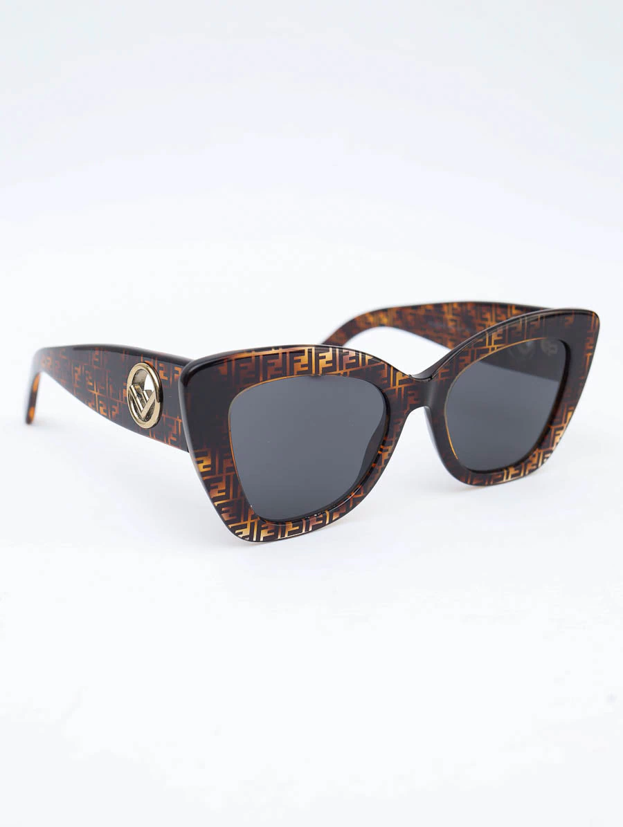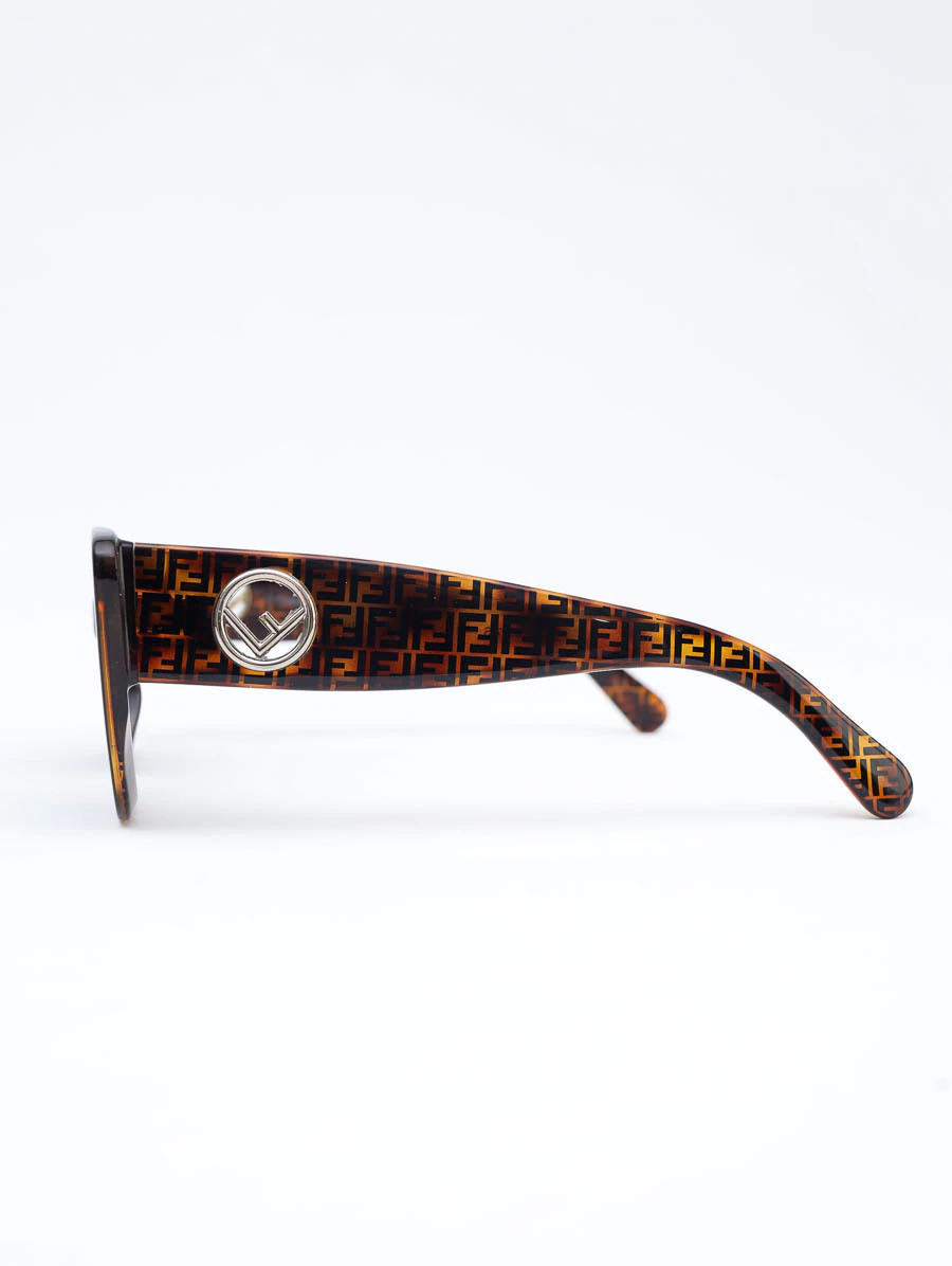 Óculos de Sol Seminovo Original Fendi FF0327 com armação em acetato com estampa monograma da Fendi na cor tortuga, lentes degrade cor preta e hastes com logotipo Fendi metalizado.
