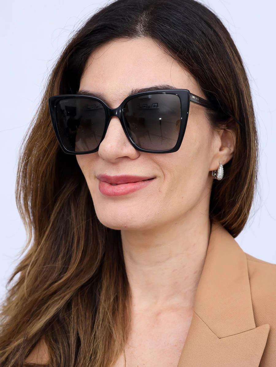 Com armação preta clássica e detalhes em brilhos delicados, o Lessie 8079O se destaca como um acessório sofisticado e glamoroso. As ferragens douradas adicionam um contraste refinado, realçando a estética luxuosa característica da marca Jimmy Choo.