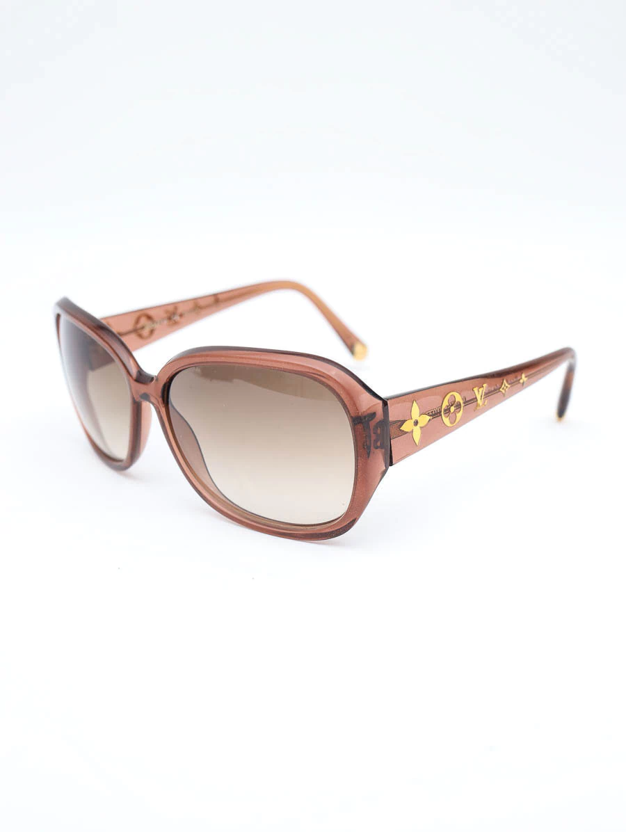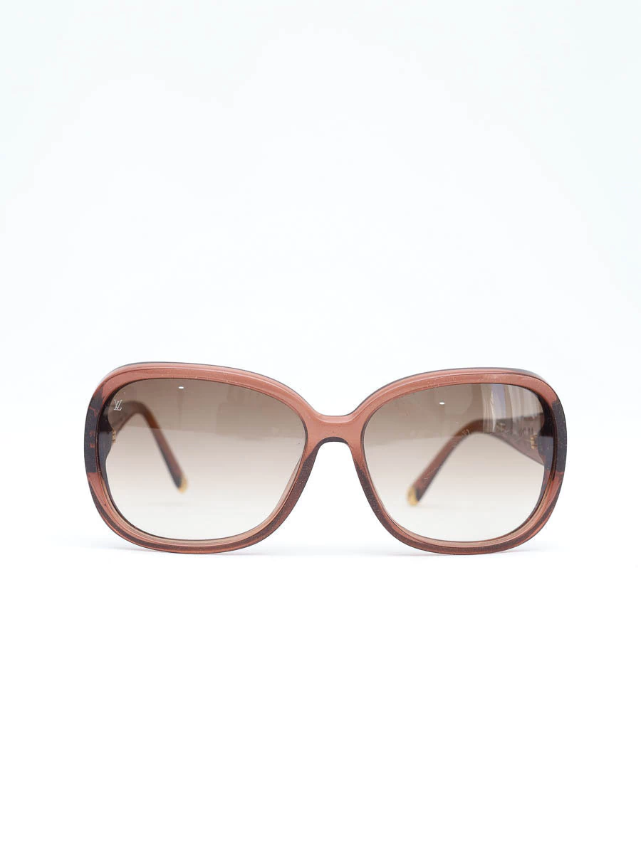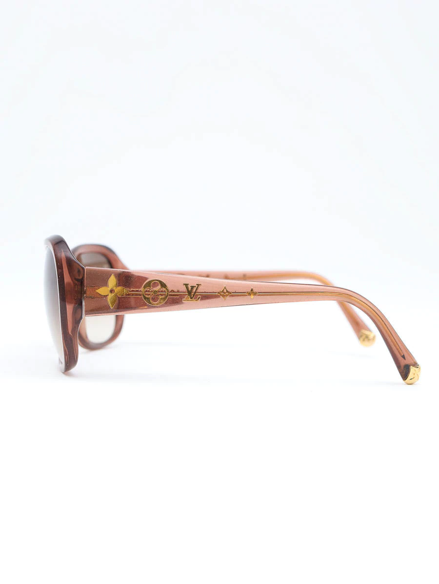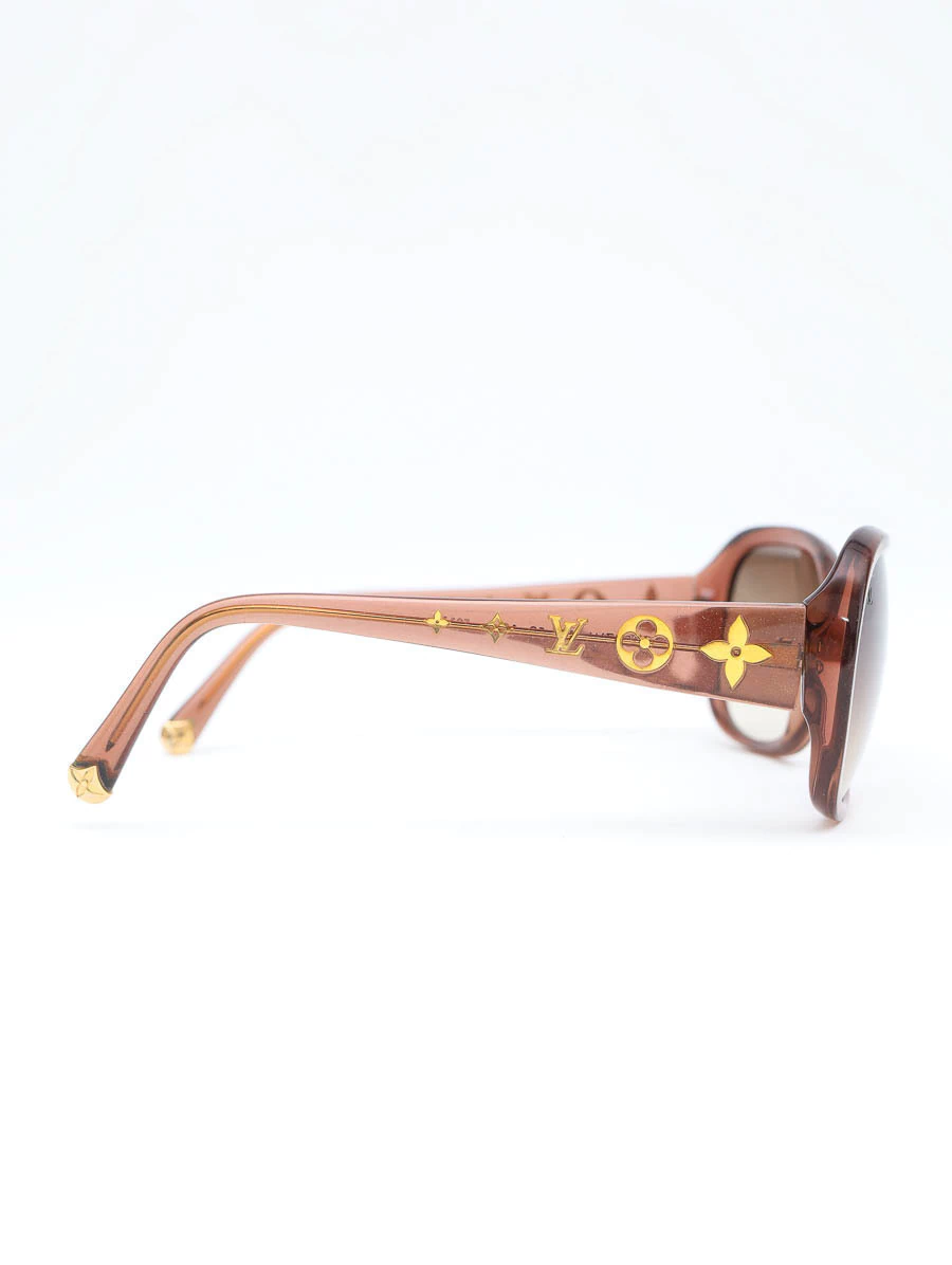 Óculos de Sol Louis Vuitton Z0547W armação em acetato na cor nude com brilhinhos dourados. Apresenta lentes em degradê marrom e detalhes nas hastes com logos da marca Louis Vuitton.