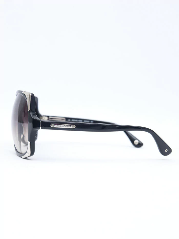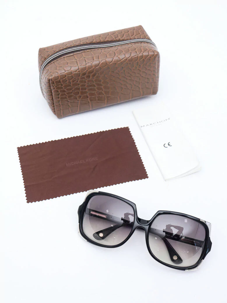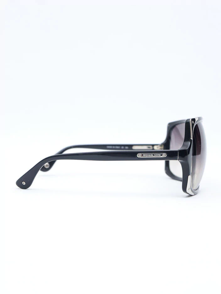 Autêntico Óculos de Sol Michael Kors MKS523 com armação em acetato preto, lentes degrades pretas e detalhes prata nos cantos e nas hastes com o nome da marca. Em excelente estado de conservação, sem riscos nas lentes e sem sinais de uso.