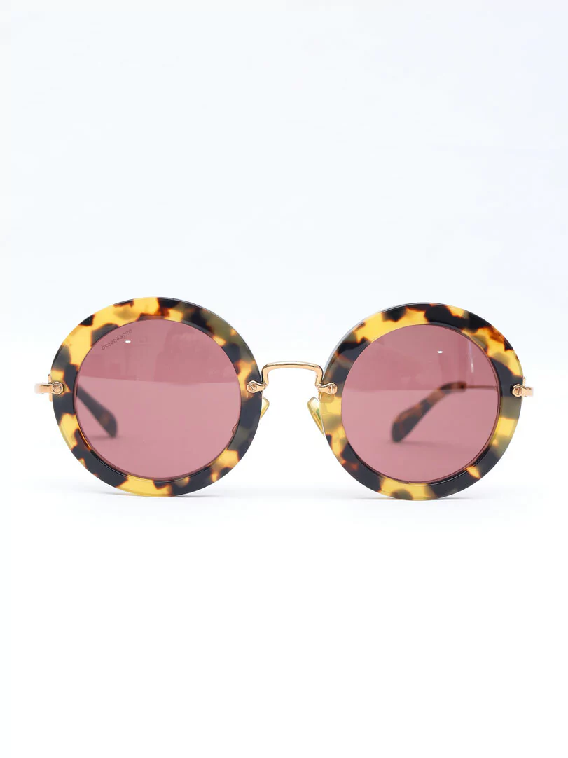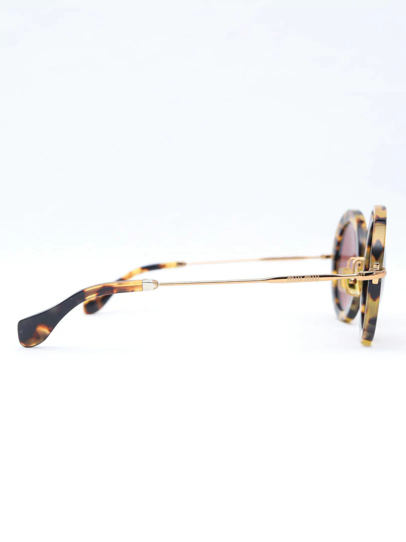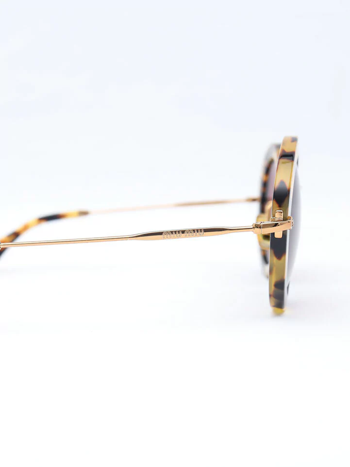 Autêntico Óculos de Sol Miu Miu SMU13N com armação hastes em metal com pontas em acetato para maior conforto, armação em acetato tortuga, lentes marrom. Apresenta estado de conservação de um óculos sem uso.