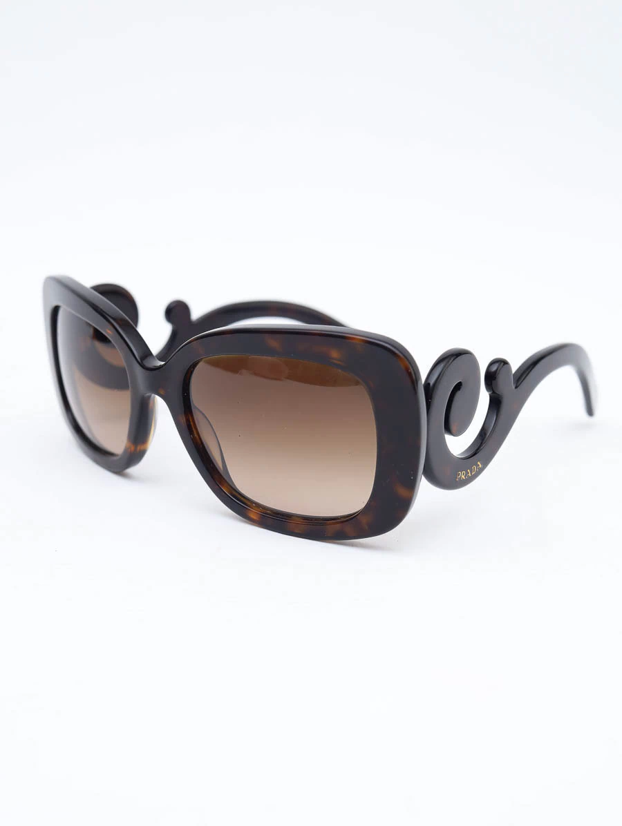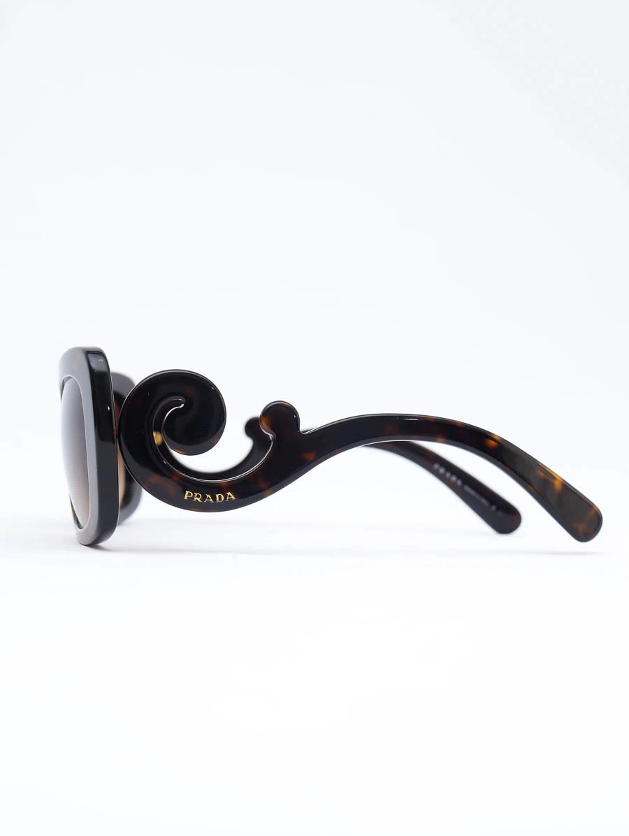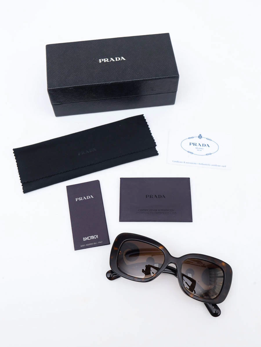 Óculos de Sol Seminovo Original Prada SPR270com armação em acetato tortuga, lentes degrade cor marrom e as laterais ornamentadas com logo da Prada.