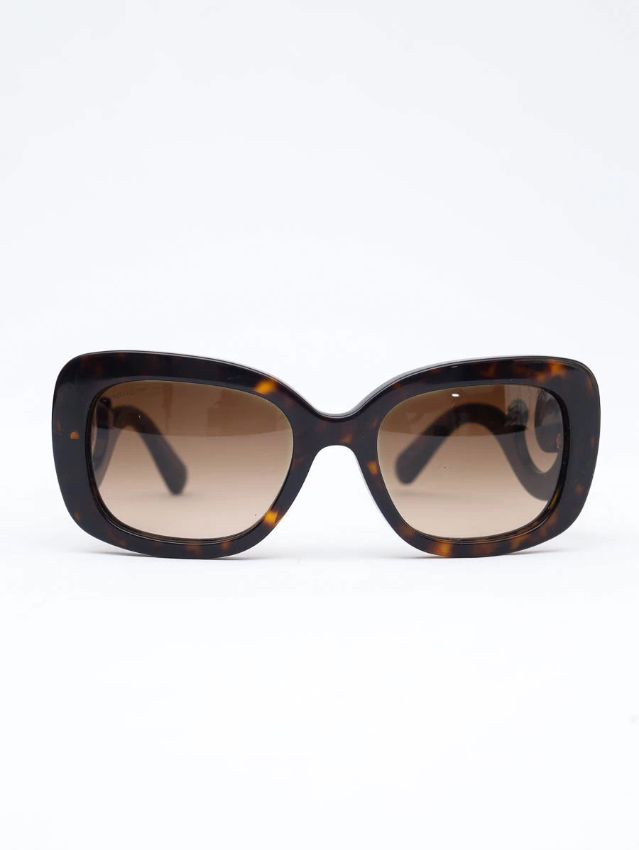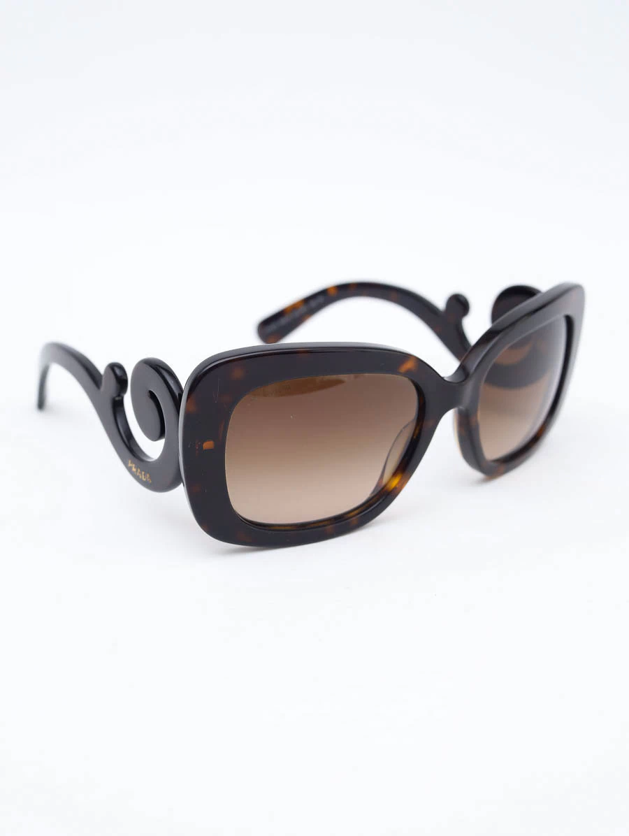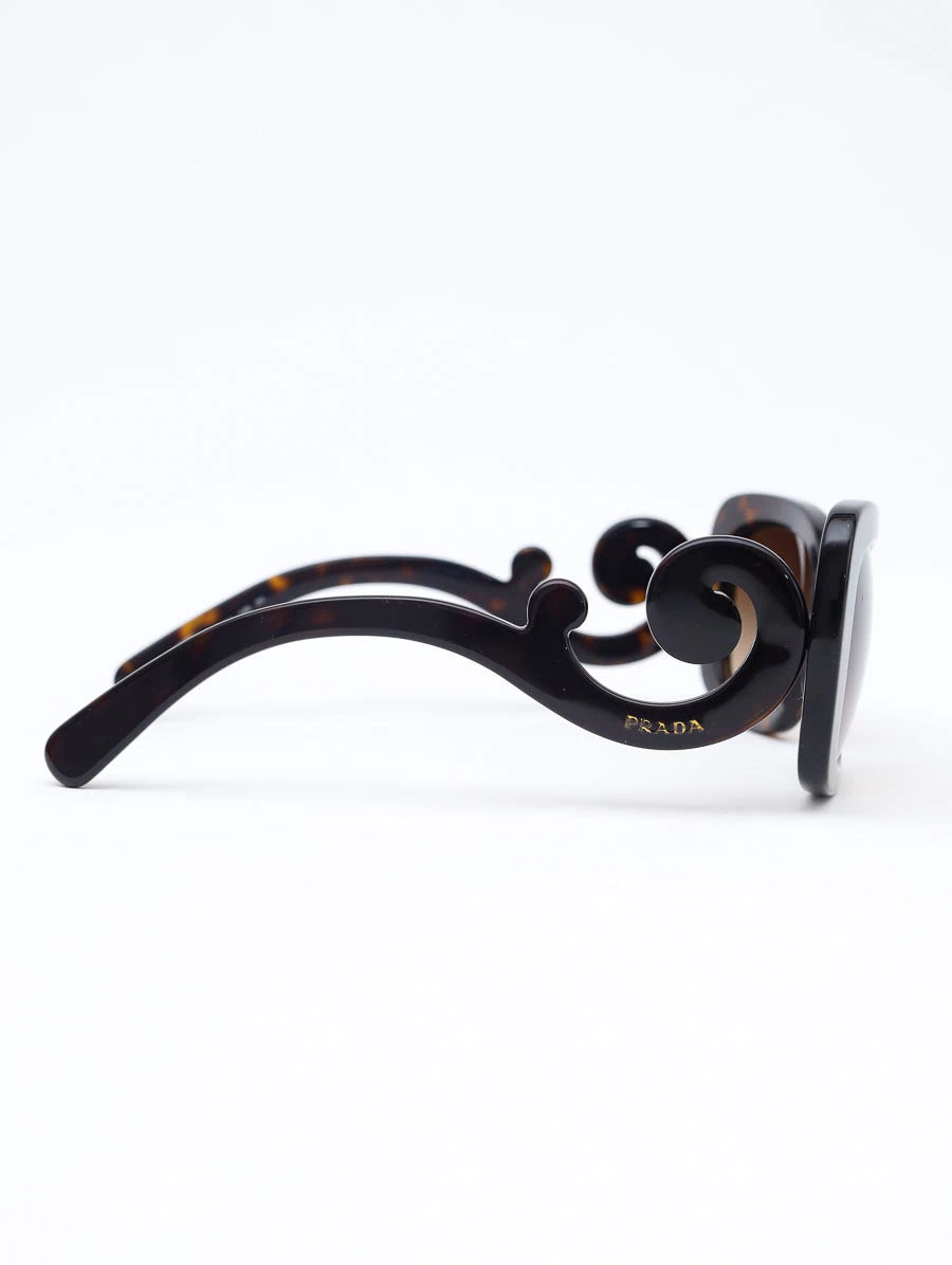 Óculos de Sol Seminovo Original Prada SPR270com armação em acetato tortuga, lentes degrade cor marrom e as laterais ornamentadas com logo da Prada.