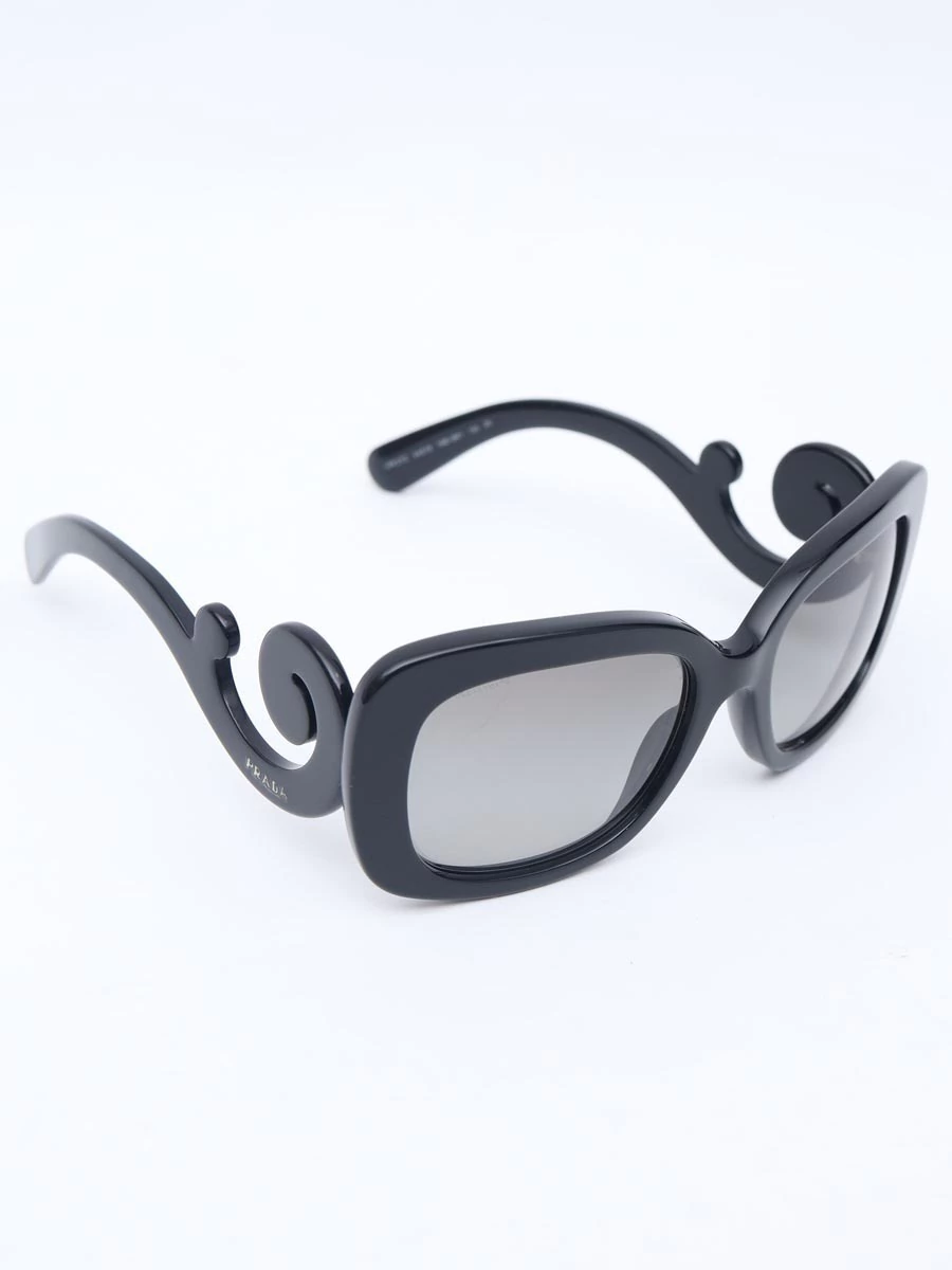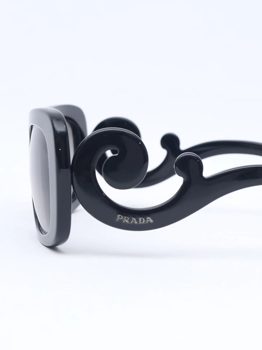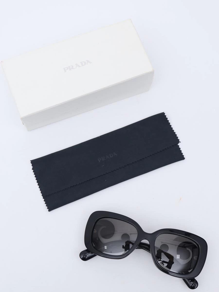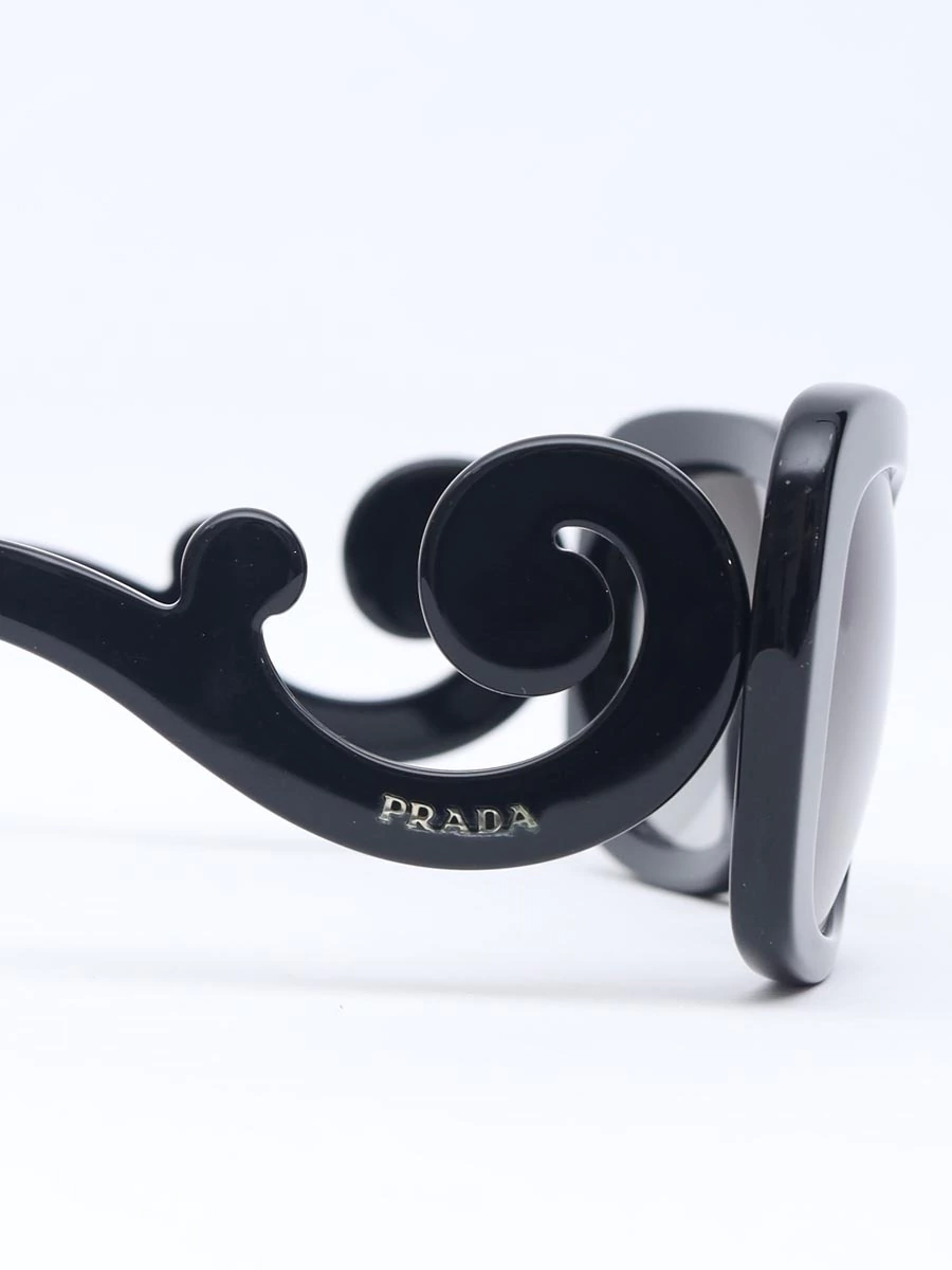 Óculos de Sol Original Prada SPR270com armação em acetato preto, lentes pretas e as laterais ornamentadas com logo da Prada. O óculos se encontra em excelente estado de conservação, sem riscos na lente e com pequeninos risquinhos na armação.