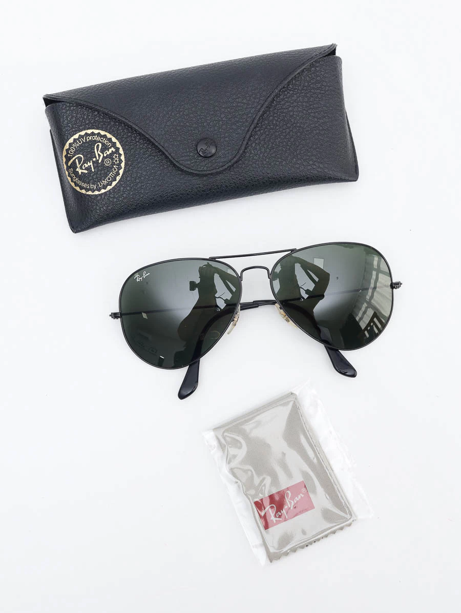 Óculos de Sol Ray Ban 3026L Aviator Large Metal com armação em metal na cor preta, lentes na mesma tonalidade e modelo aviador.