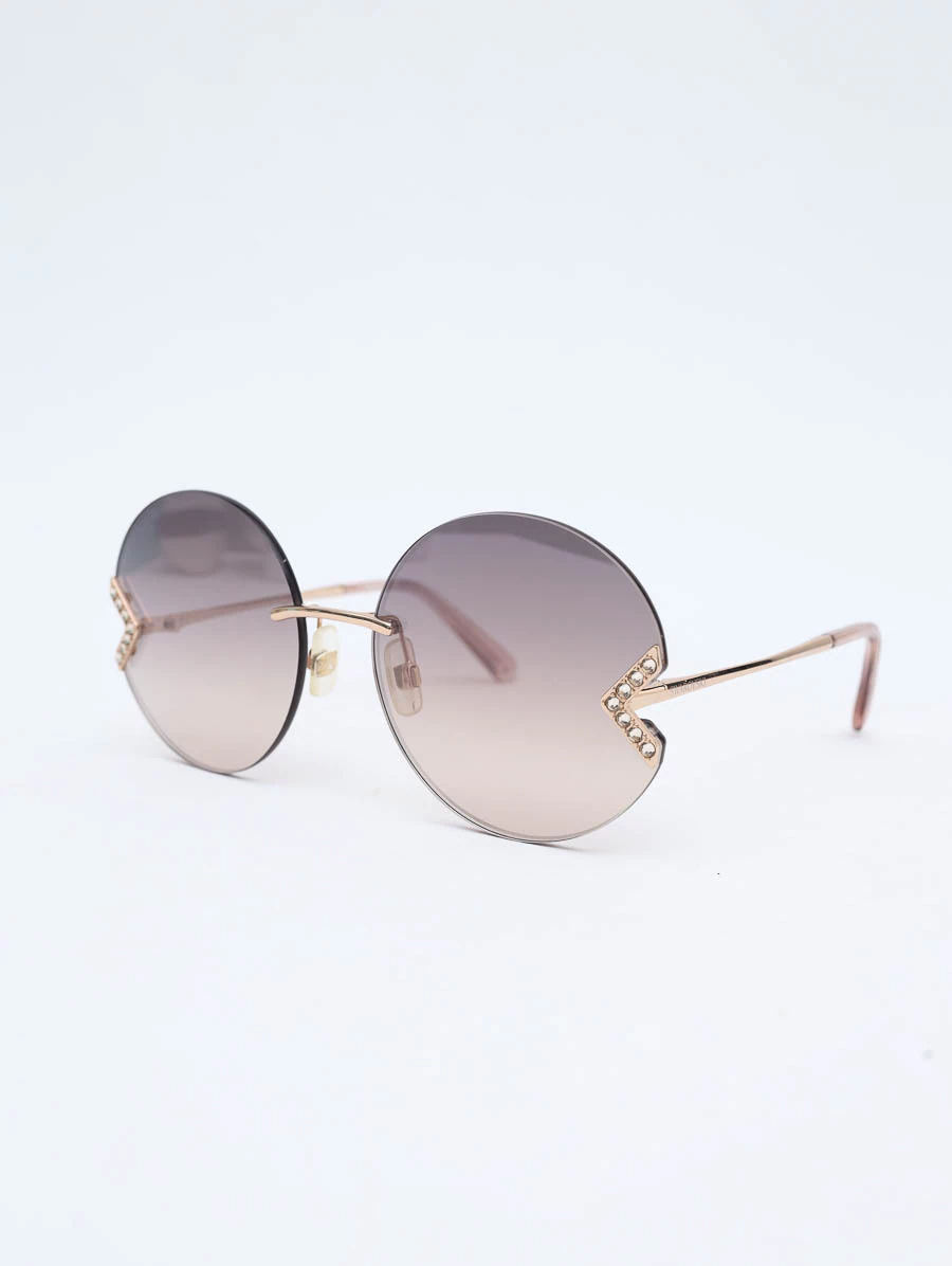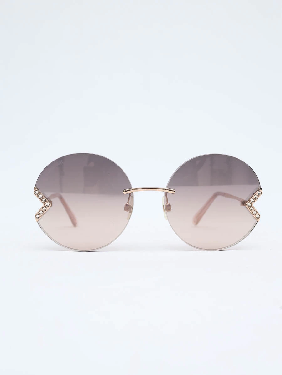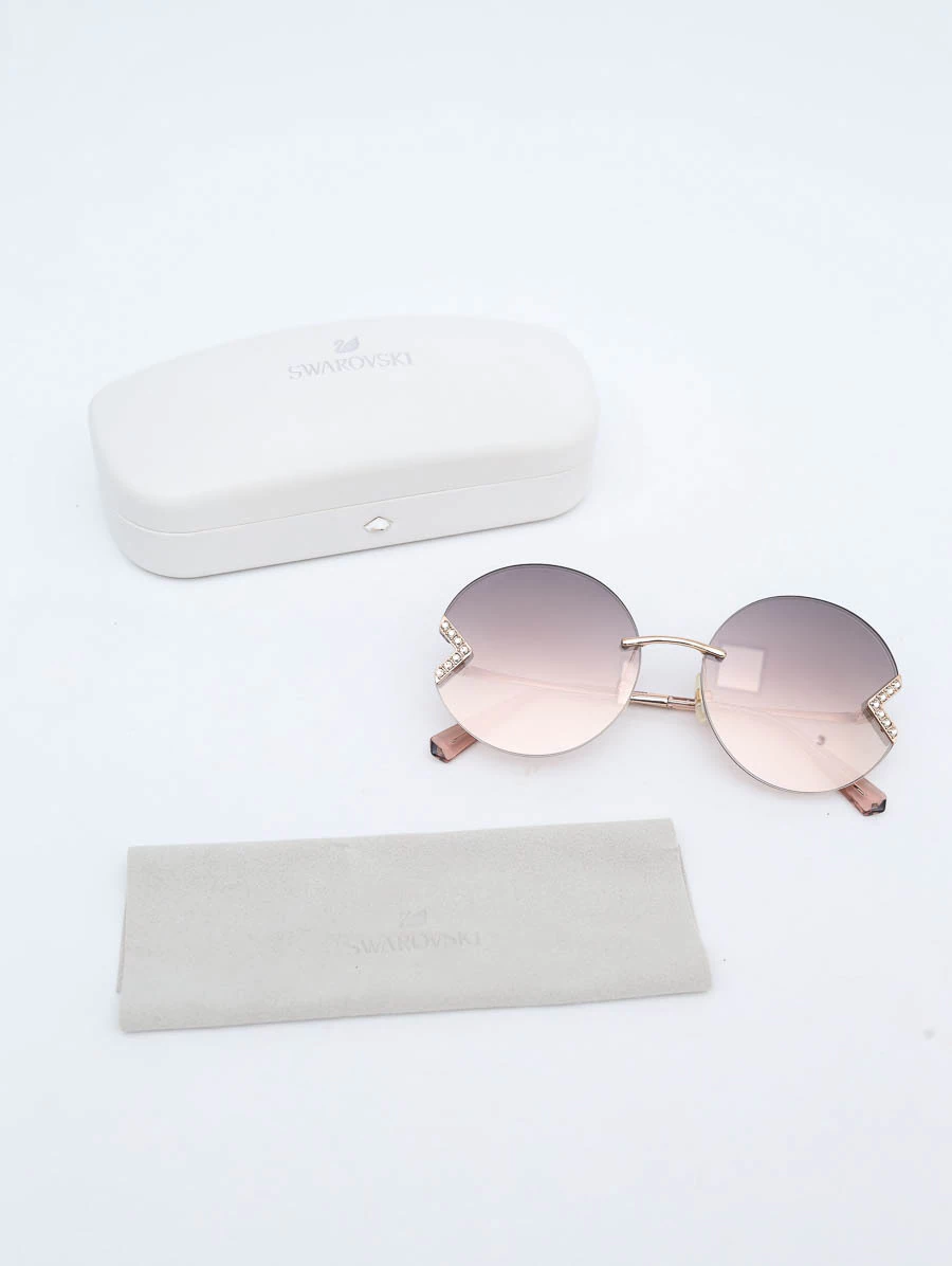 Óculos de Sol Seminovo Original Swarovski SK 307 com armação em metais na cor rosé, lentes em degradê marrom claro e lindo detalhe em formato de v com cristais swarovski. hastes com final em acetato.