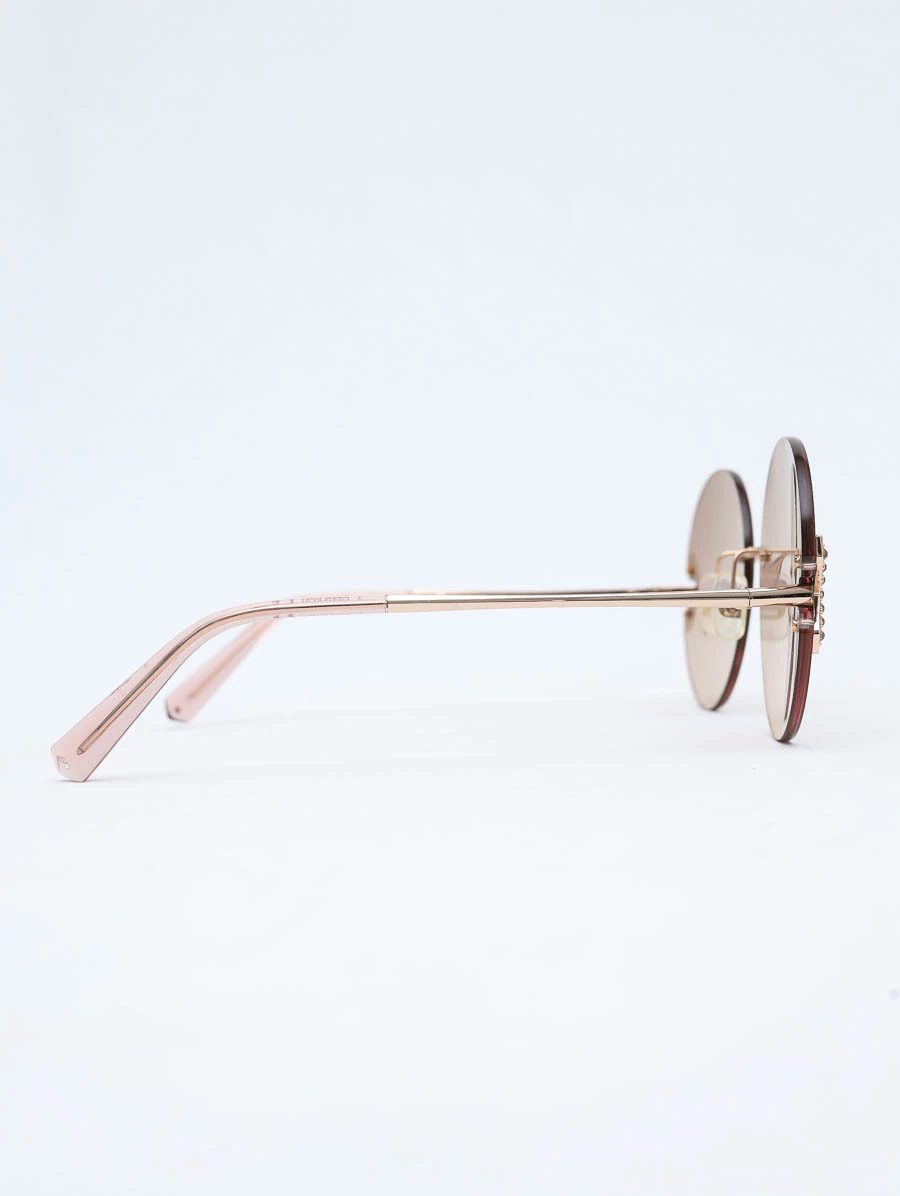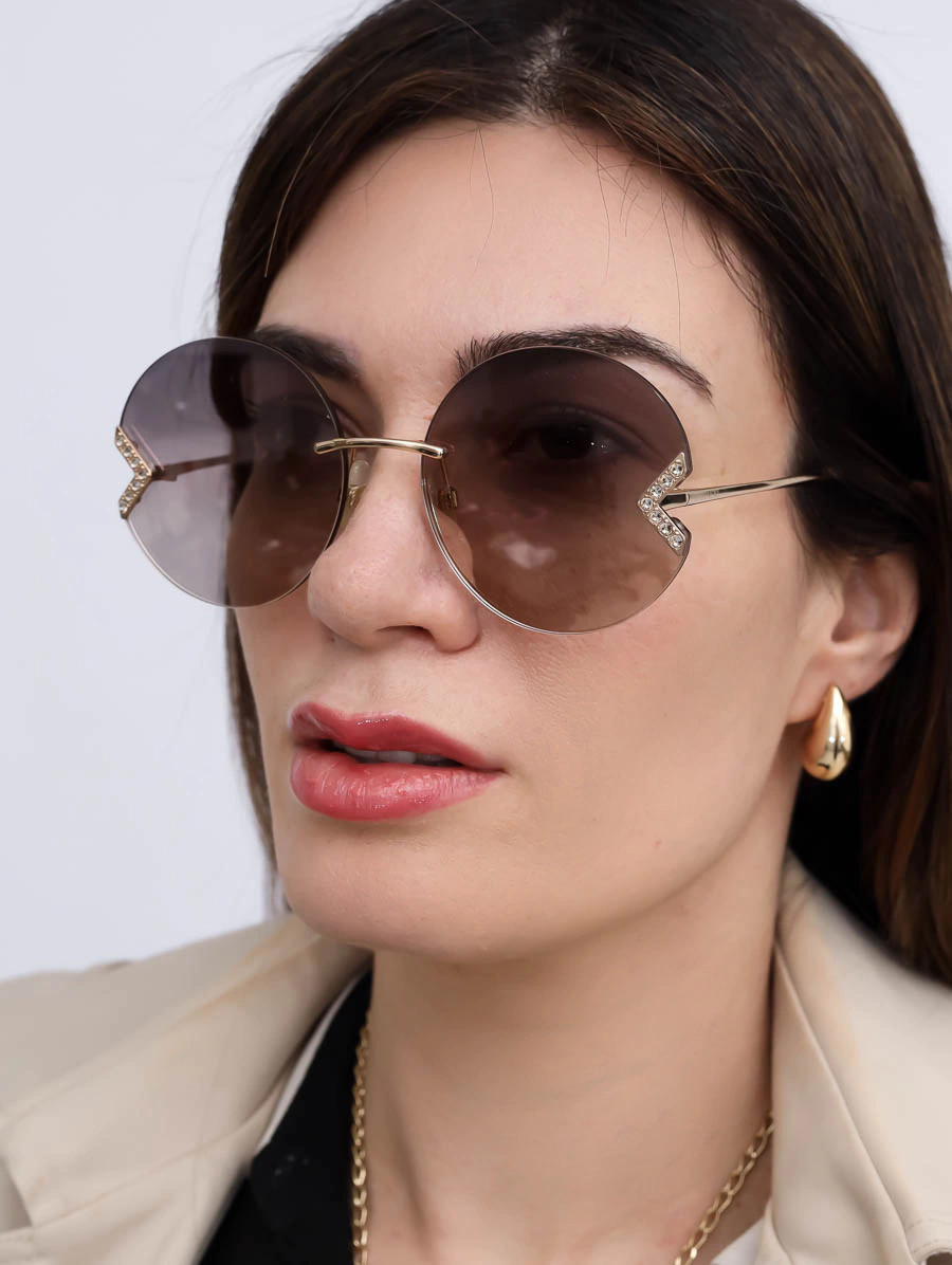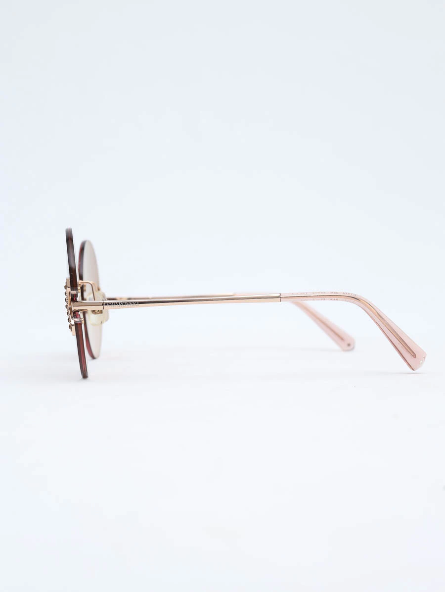 Óculos de Sol Seminovo Original Swarovski SK 307 com armação em metais na cor rosé, lentes em degradê marrom claro e lindo detalhe em formato de v com cristais swarovski. hastes com final em acetato.
