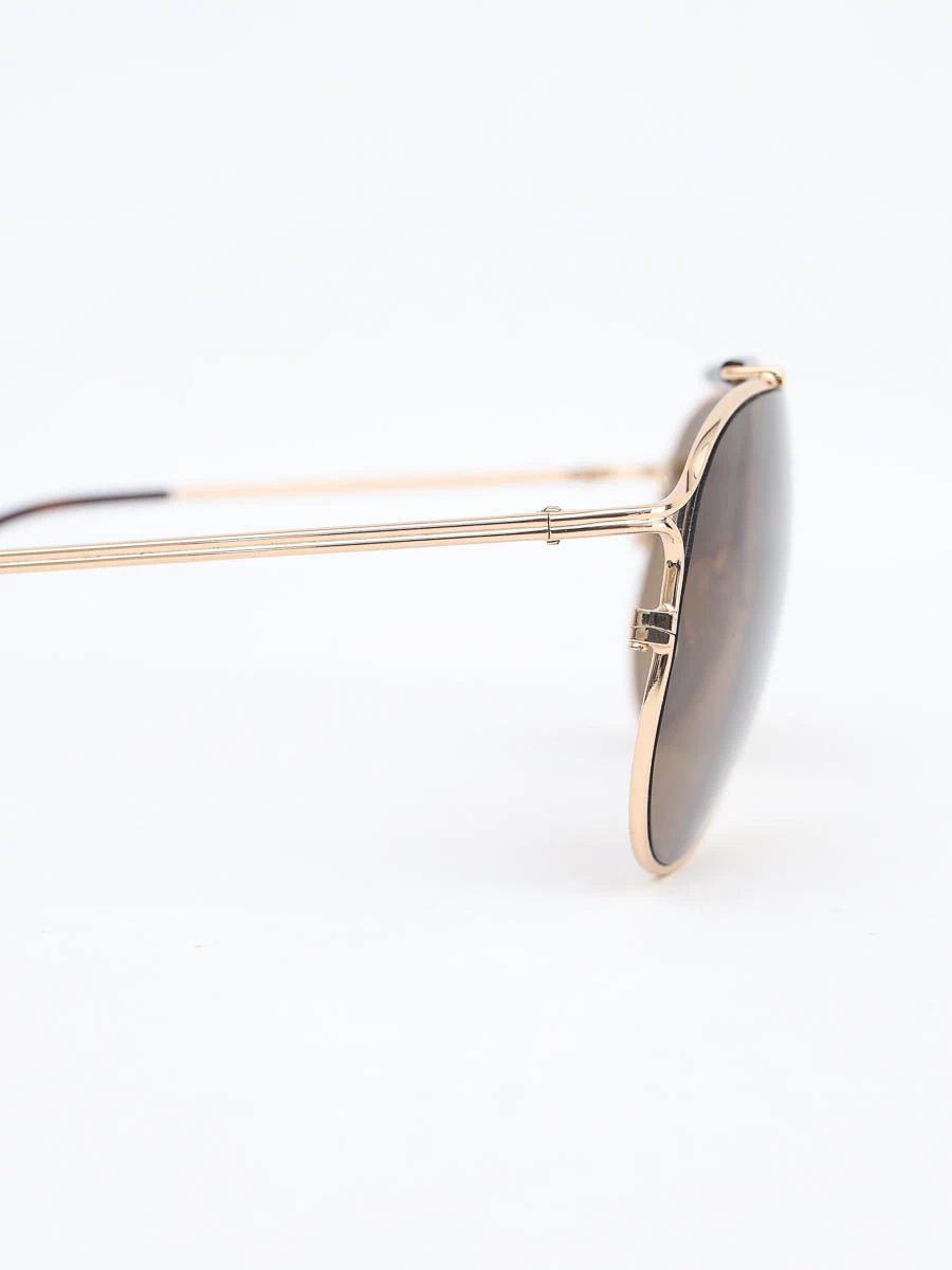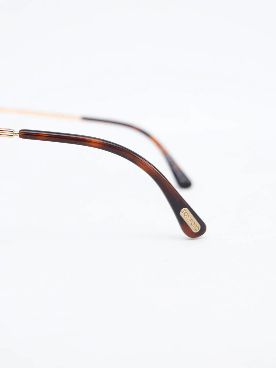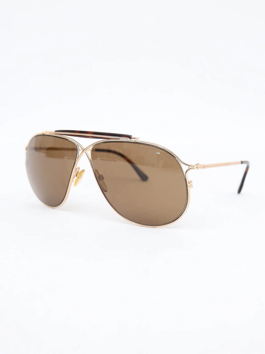 Óculos de Sol Original Tom Ford Magnus com armação em metal dourado e lentes na cor marrom. Apresenta detalhes em acetato tortuga na frente da armação e nas pontas das hastes.