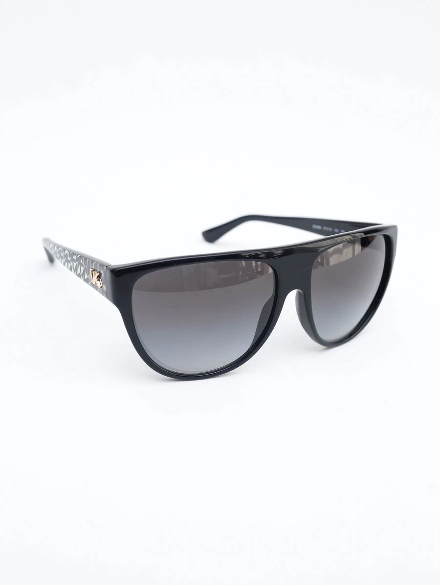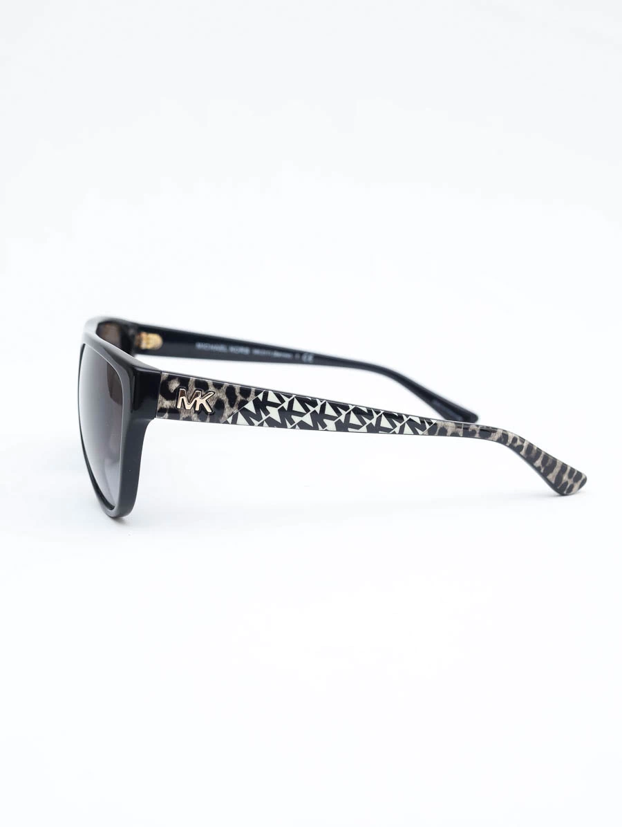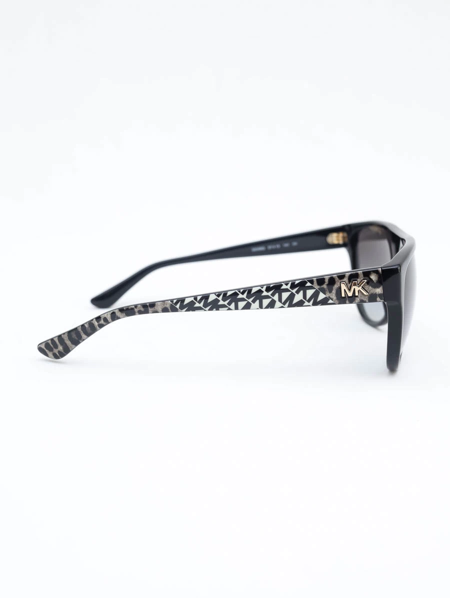 Óculos Michael Kors 30058G com armação em acetato na cor preta, metais dourados e detalhes nas hastes em estampa animal print e monograma com a logo MK.