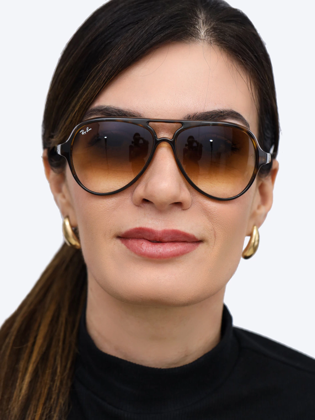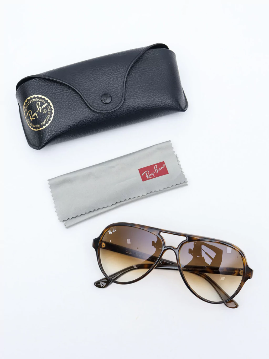Óculos de Sol Original Ray-Ban RB4125 com armação em acetato marrom tortuga e lentes seguindo essa mesma linha de cor com um leve degradê marrom, detalhe nas hastes com logo Ray-Ban. Em excelente estado de conservação, com pequenos sinais de uso.