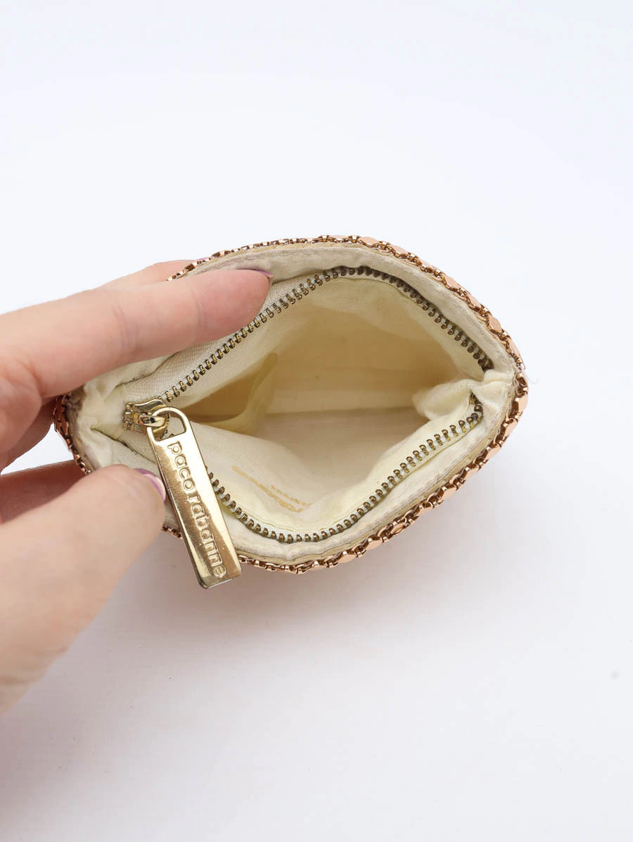 Porta Moedas Original Seminovo Paco Rabanne confeccionada em metais na cor rosé, apresenta abertura por zíper, interior com um compartimento símples.