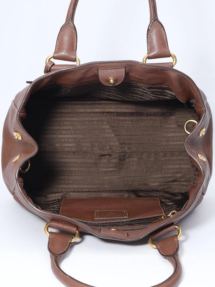 Prada Brown Vitello Daino Leather Large Tote