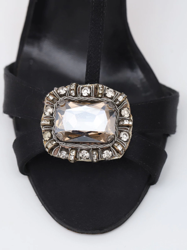 Modelo: Sapato Manolo Blahnik Cetim Preto c/ Pedras.
