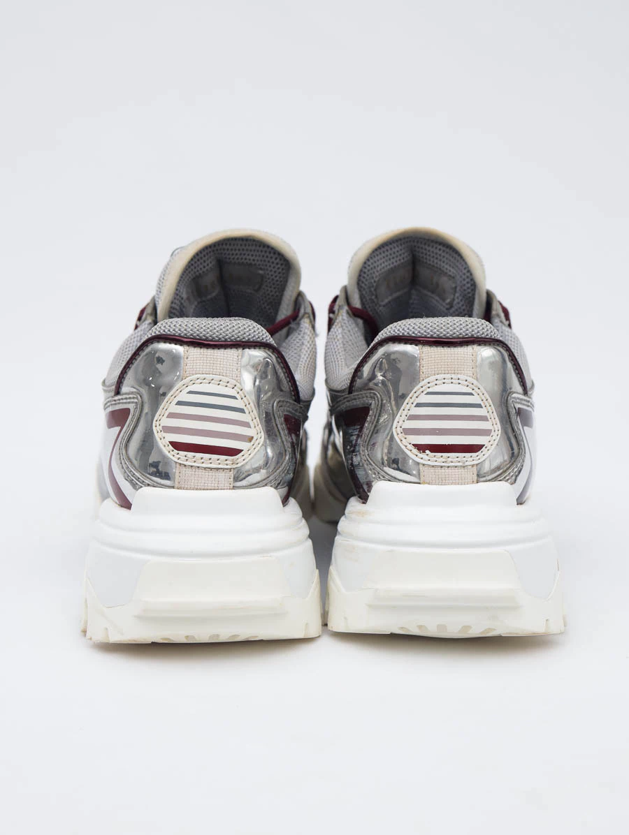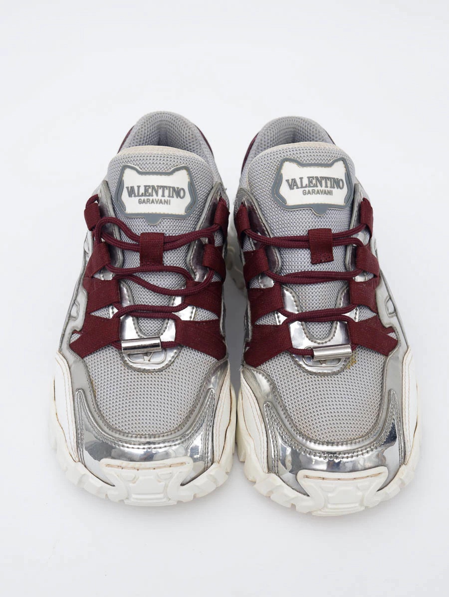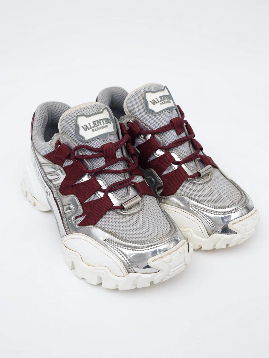 Tênis Seminovo Original Valentino Climbers produzido em couro no tamanho 35 Brasil, nas cores branco, prata e com detalhes em vinho.