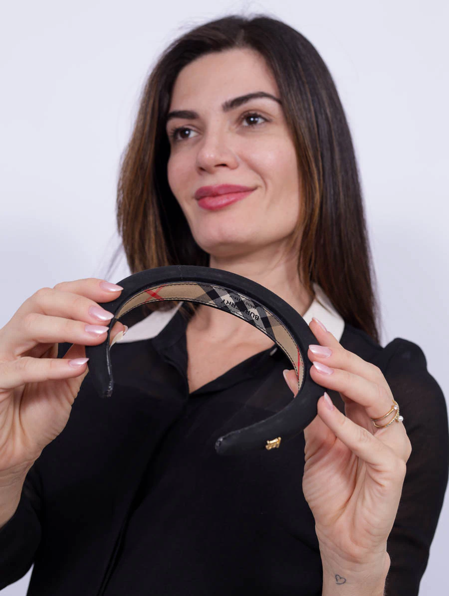 Tiara Burberry Pretaproduzida em tecido na cor preta e interior na estampa clássica da marca.
